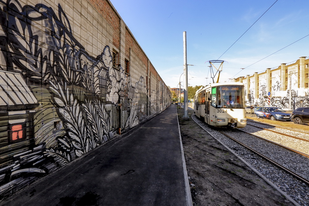 Это панно составит единый ансамбль с картиной напротив. Обе работы посвящены прошлому города. Автор мурала — томский стрит-арт-художник Илья Маломощенко. Для монументальной росписи он использовал сохранившиеся фотографии села Кривощёково и Центрального района, предоставленные музеем Новосибирска.