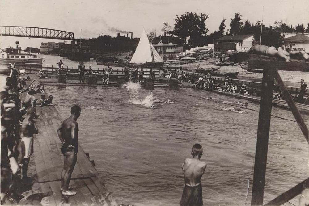 А в 1930-х тут была устроена дачная пристань, которая потом называлась пристанью «Октябрьская». Отсюда кораблики всё лето бегали вверх и вниз по реке, увозя жителей в дачные посёлки и в путешествия по Оби. В 1989-м на этом месте установили памятник теплоходу «Ракета» — знаменитому судну на подводных крыльях. А чуть далее в начале 1930-х построили водно-лыжную станцию крайсовпрофа с 50-метровым бассейном, сооружённым прямо на проточной воде, и 10-метровой вышкой для прыжков в воду. Рядом была ещё одна водная станция — «Динамо».