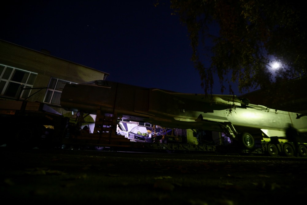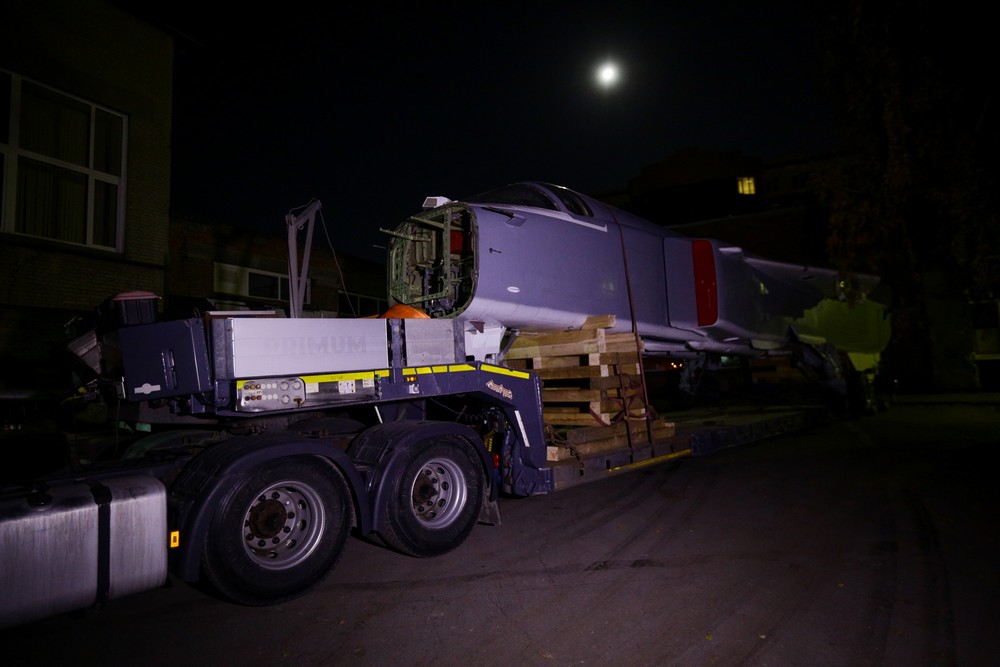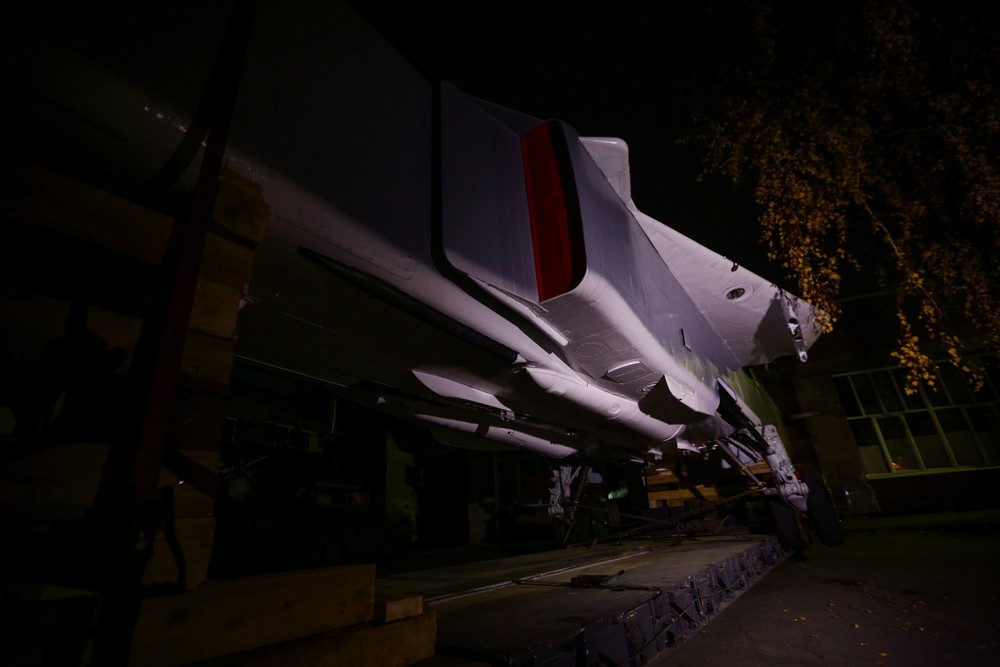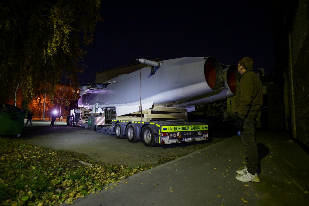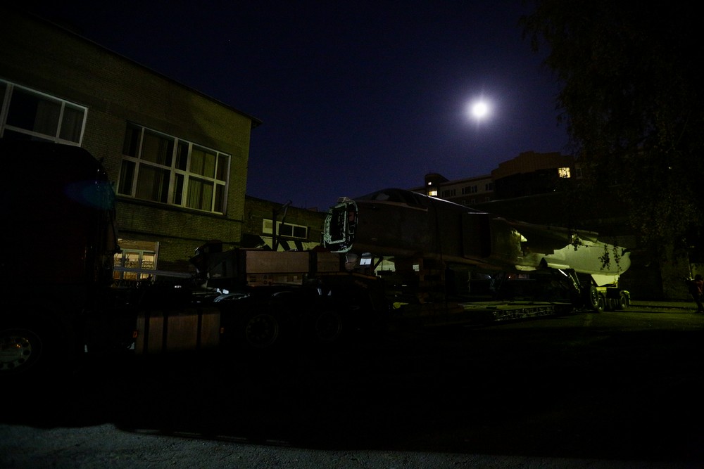 В первом часу ночи 19 октября на авиазаводе имени Чкалова началась спецоперация по транспортировке бомбардировщика Су-24 на место его «вечного» прикола — в сквер возле НГТУ.