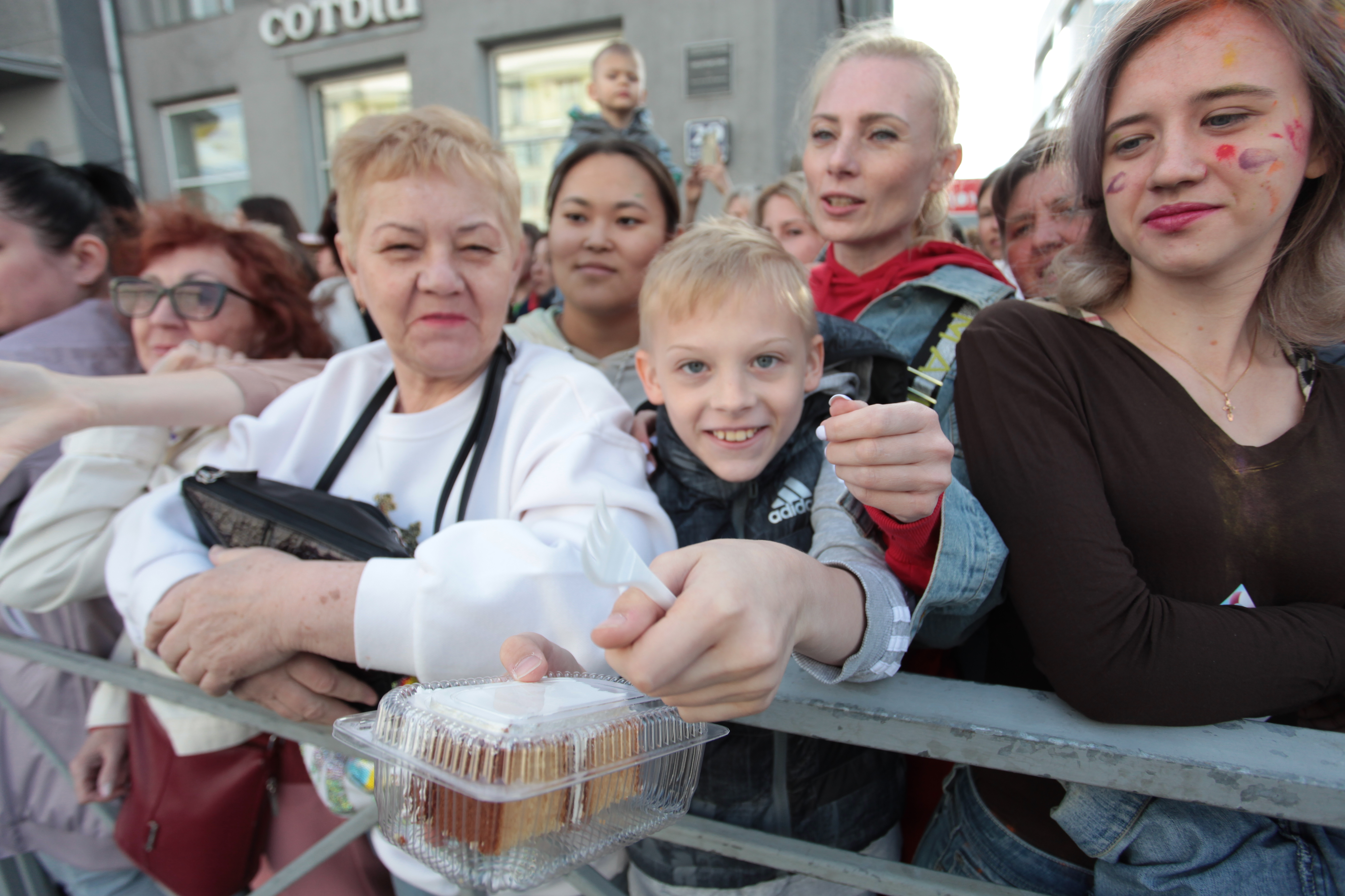 Попробовать результат на вкус смогли все желающие: куски юбилейного лакомства раздавали прямо на Красном проспекте. Получившийся десерт официально признали отечественным и мировым лидером в номинации «Самые большие цифры из бисквита». Он попал в Реестр рекордов России и международную книгу рекордов «Интеррекорд».