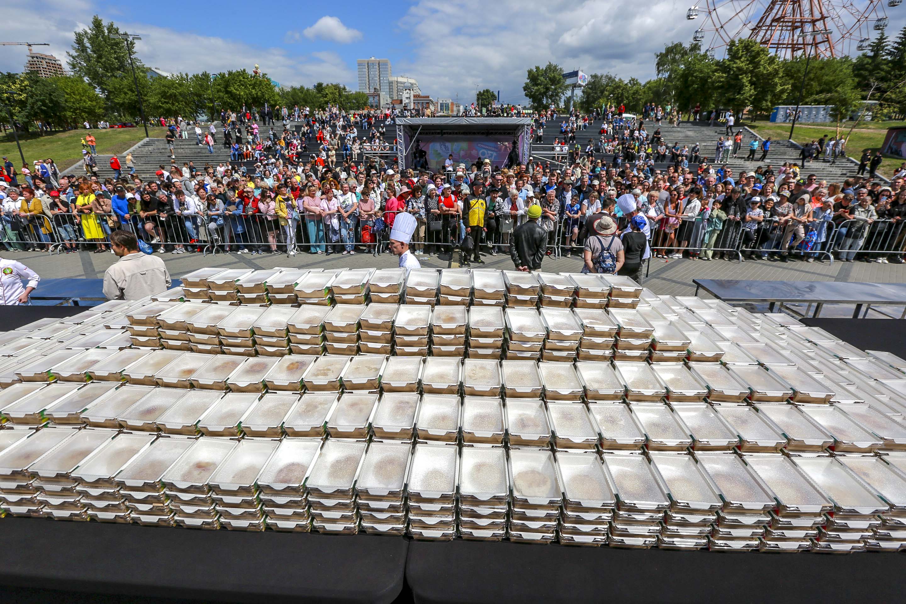 Ещё одну кулинарную победу зарегистрировали в День города на Михайловской набережной. Полсотни сибирских шеф-поваров приготовили самую гигантскую в мире порцию биточков из щуки — 1130 штук. На самом деле их, признаются организаторы, было больше на несколько десятков, но для красоты юбилейного рекорда в документы вписали именно этот результат.