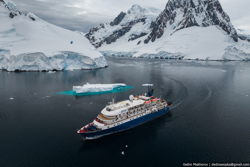 Судно прошло через пролив Лемер. Это, по словам Махорова, одно из самых популярных мест для посещения в Антарктике, где над водой с двух сторон возвышаются отвесные скалы, покрытые ледяными шапками.