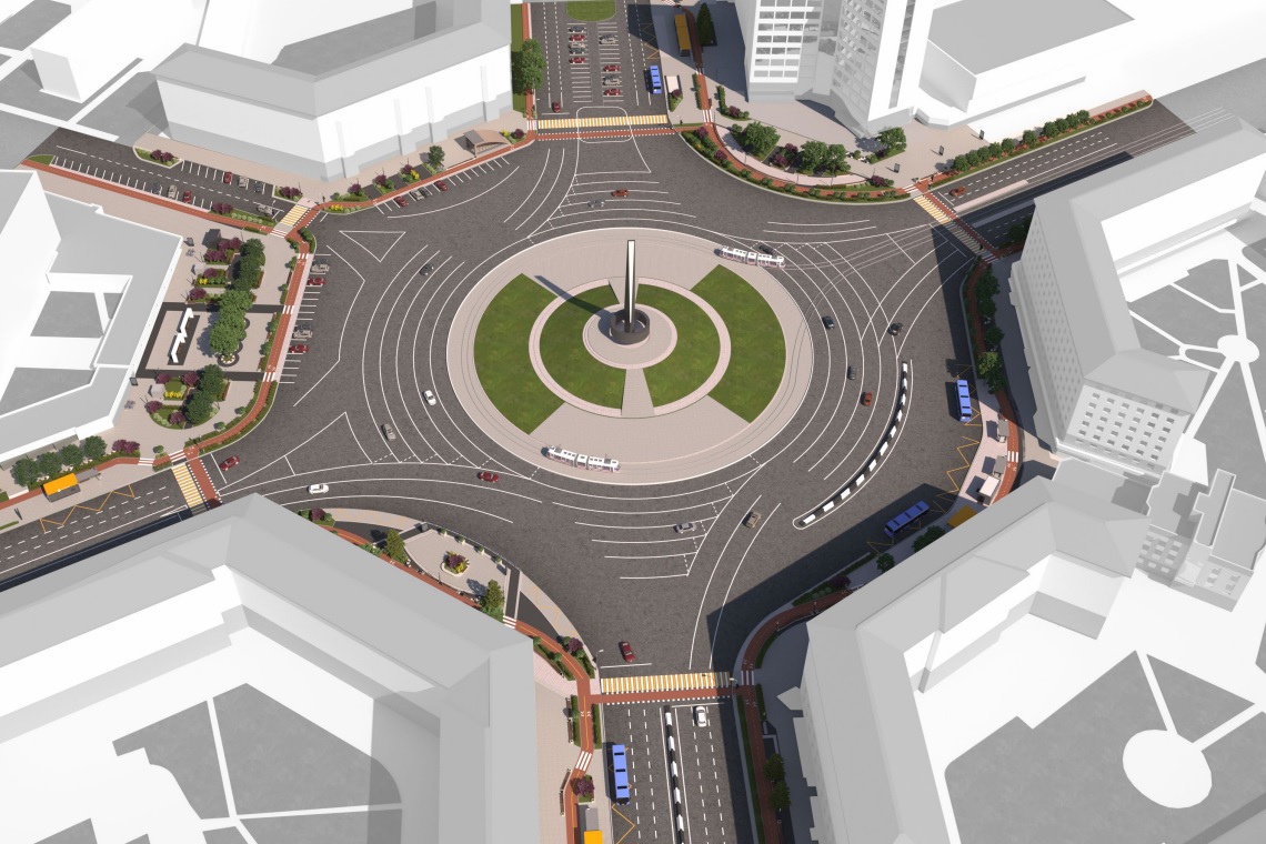 Как будет выглядеть площадь Калинина со стелой «Город трудовой доблести»