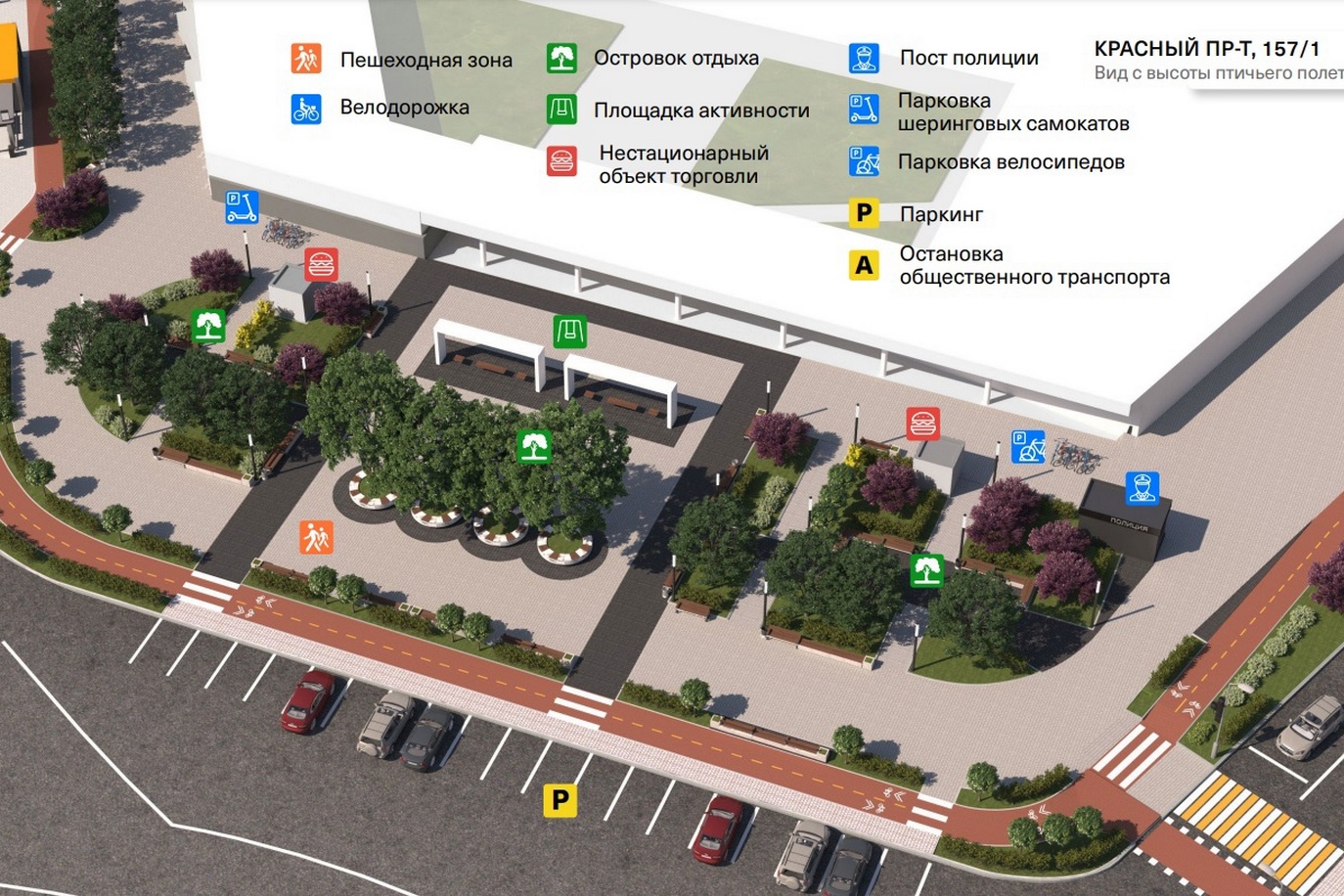 Эскизы будущего благоустройства площади мэр разместил на своей странице в соцсети «ВКонтакте». Судя по опубликованным изображениям, в этой локации, кроме стелы «Город трудовой доблести», могут появиться прогулочные зоны. Среди предложений — экскурсионная площадка с видом на стелу, экраны с трансляцией исторических материалов, отдельные дорожки для самокатов и велосипедов.