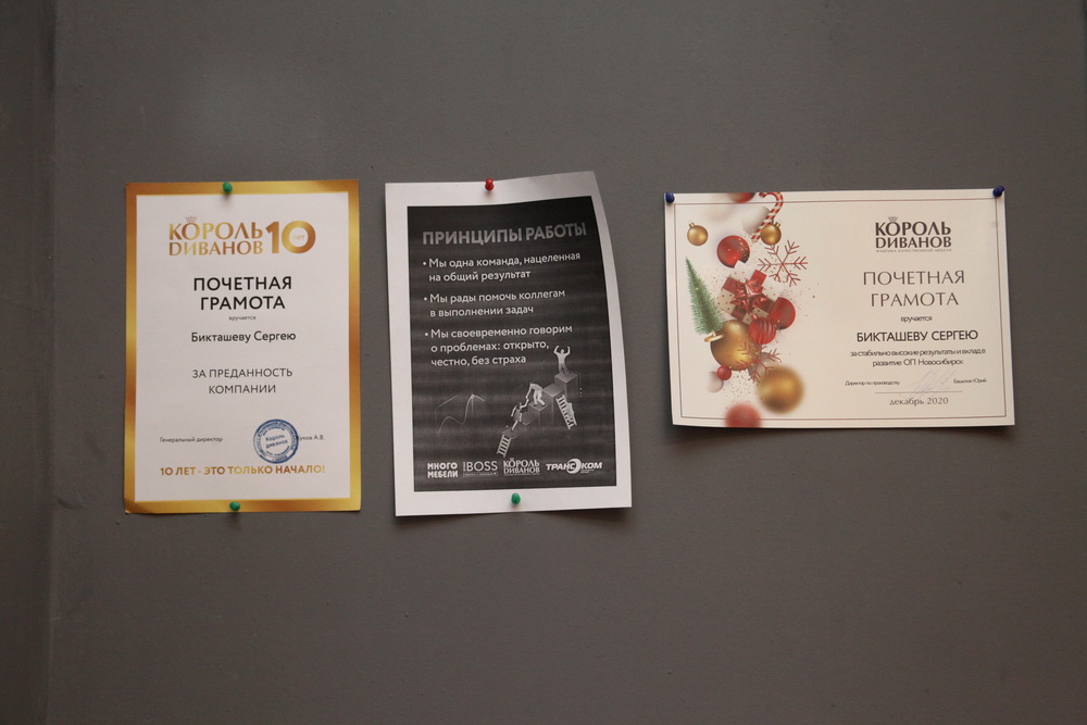 Чтобы запустить полноценную фабрику, в наш город из Саратова приехал специальный десант, в том числе руководитель сборочного производства Михаил Ковалёв и Сергей Бикташев, ставший руководителем новосибирского подразделения «Короля диванов».