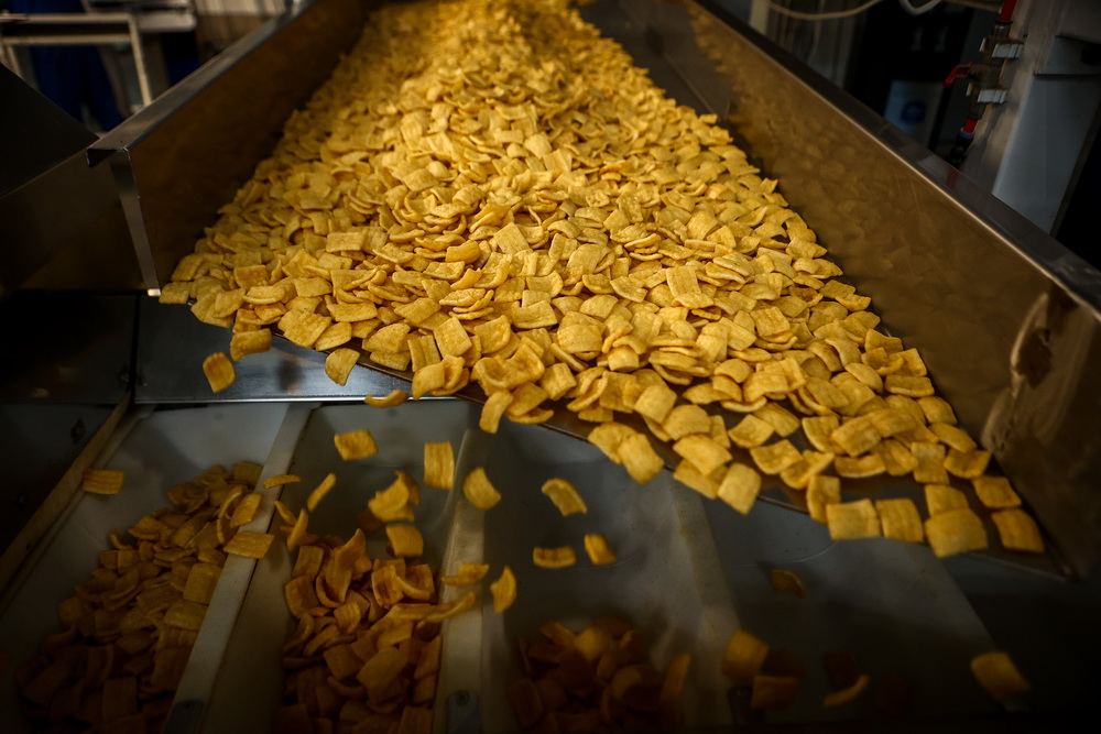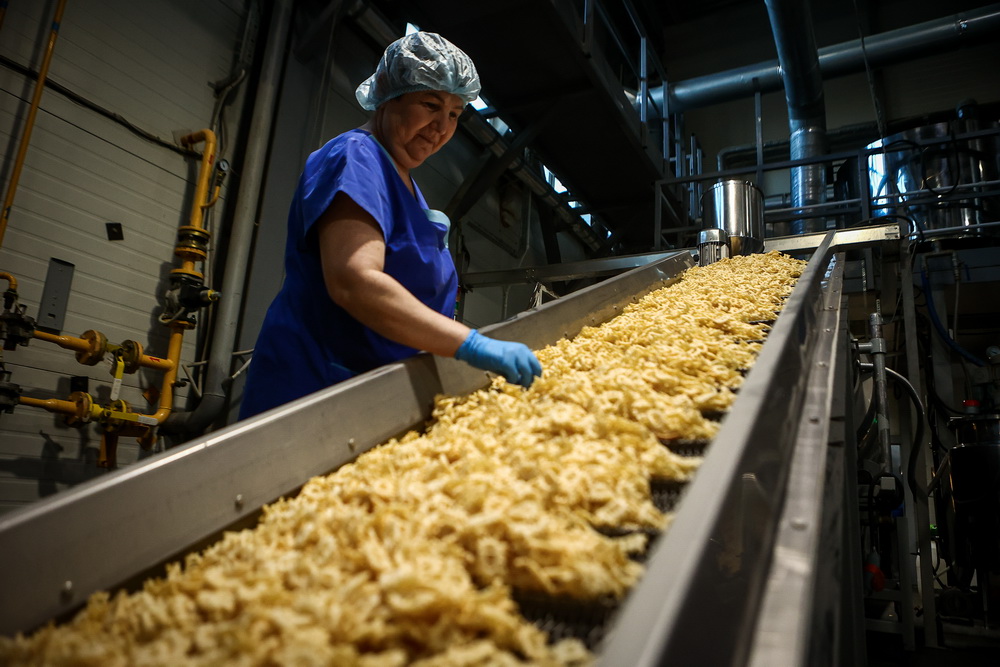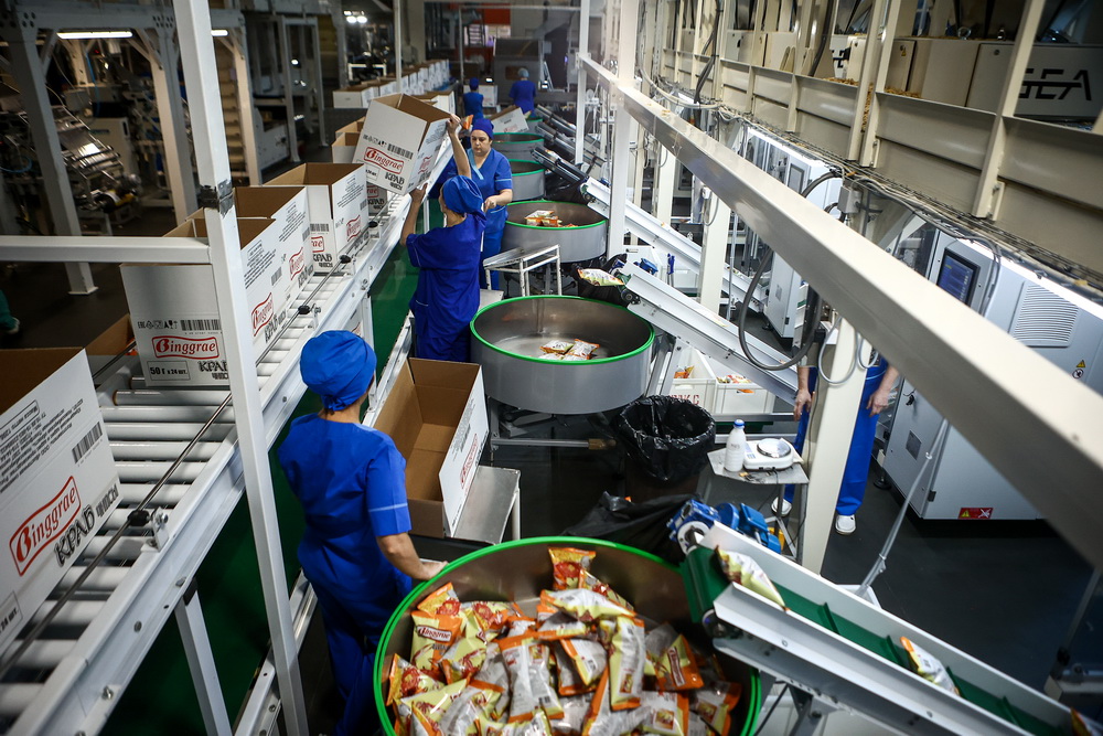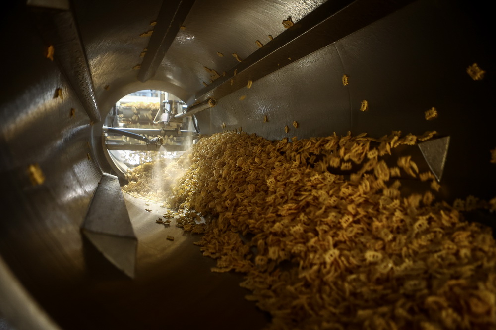 «У нас есть обжарка в соли и обжарка во фритюре. В последнем жарят чипсы со вкусом бекона, кальмара и „зяки“. Крабовые и креветочные жарятся на соли», — рассказывает генеральный директор Восточной снековой компании Алексей Кармышев.