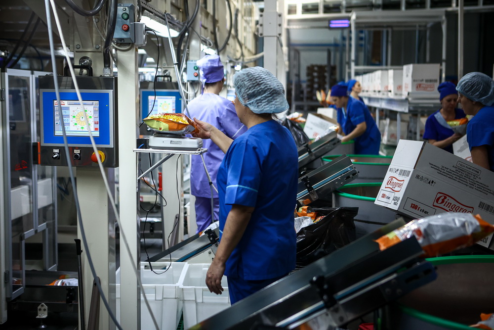 «Сырьё мы берём у разных поставщиков. Специи идут из Кореи. Это строгое требование партнёров. Упаковочную плёнку заказываем в Китае. Гофротару дают новосибирские и алтайские поставщики. Муку, кукурузный крахмал, масло — российские производители», — рассказывает руководитель.