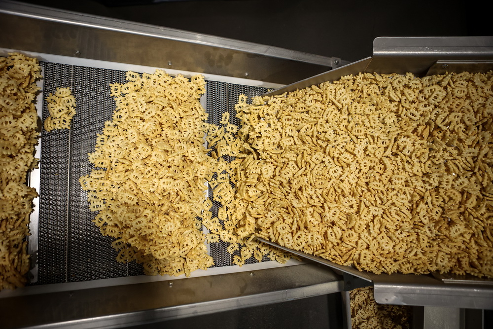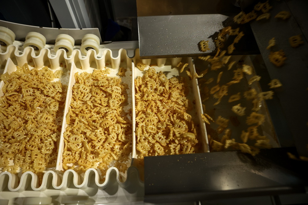 Завод выполняет полный производственный цикл. Делает заготовку, из которой жарят чипсы — пеллеты. В их составе — пшеничная мука, кукурузный крахмал и корейские специи.