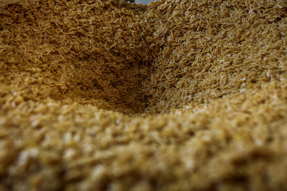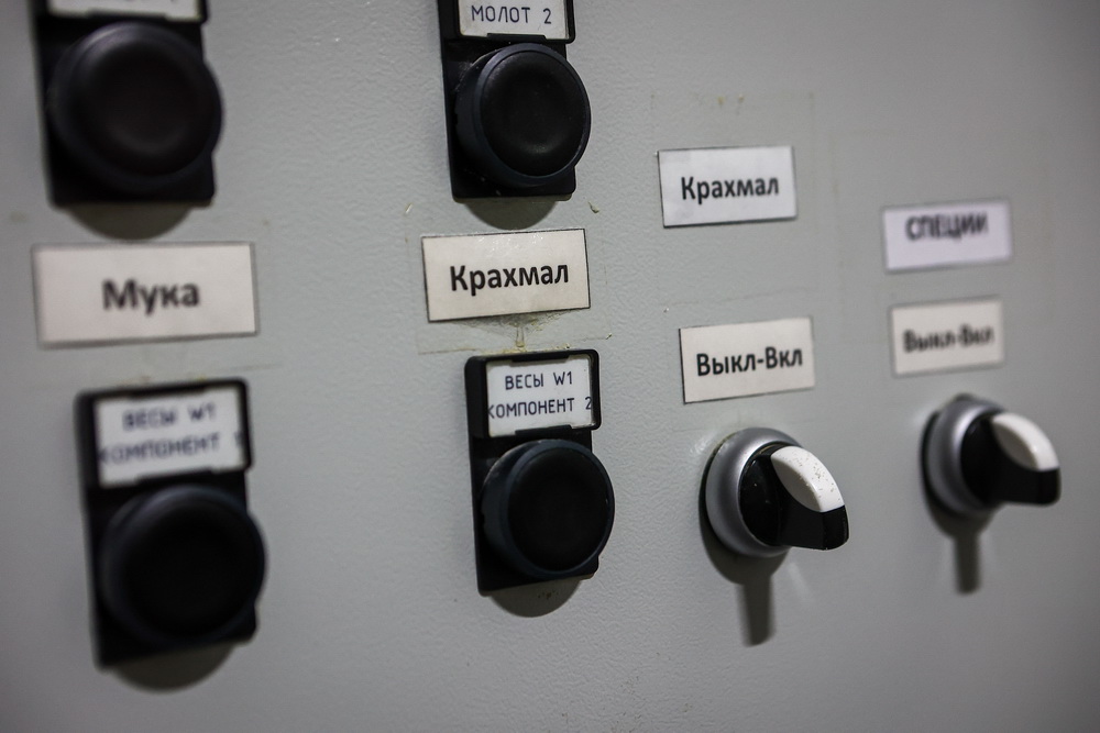 В цехе работают три линии для обжарки. Ещё две линии — для пеллет: одна, более мощная, выпускает только «краба», а весь прочий ассортимент идёт со второй установки.