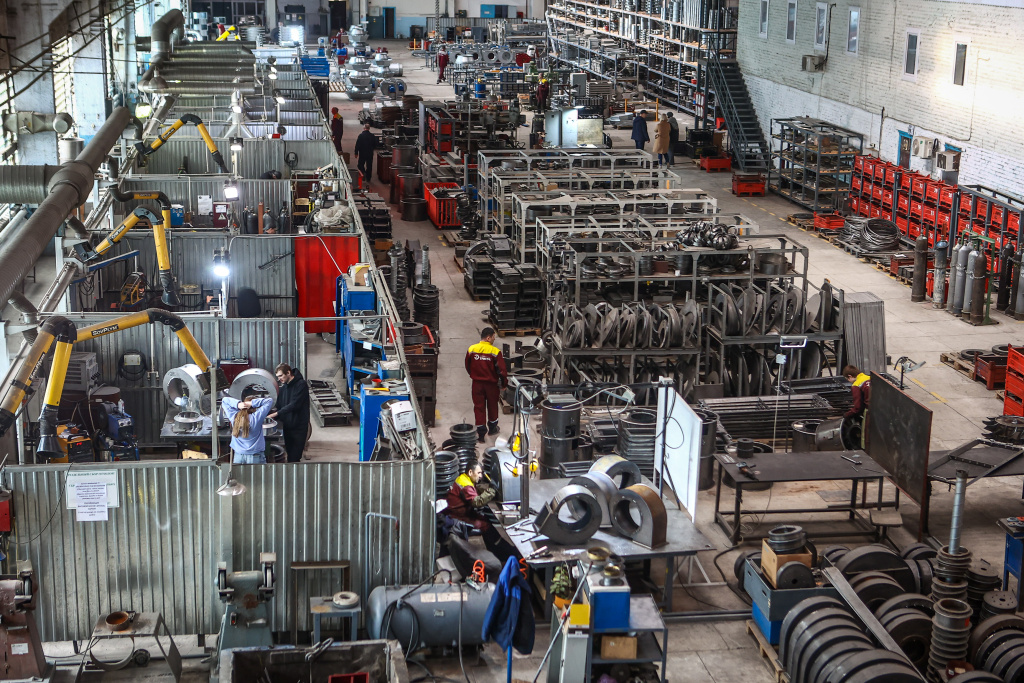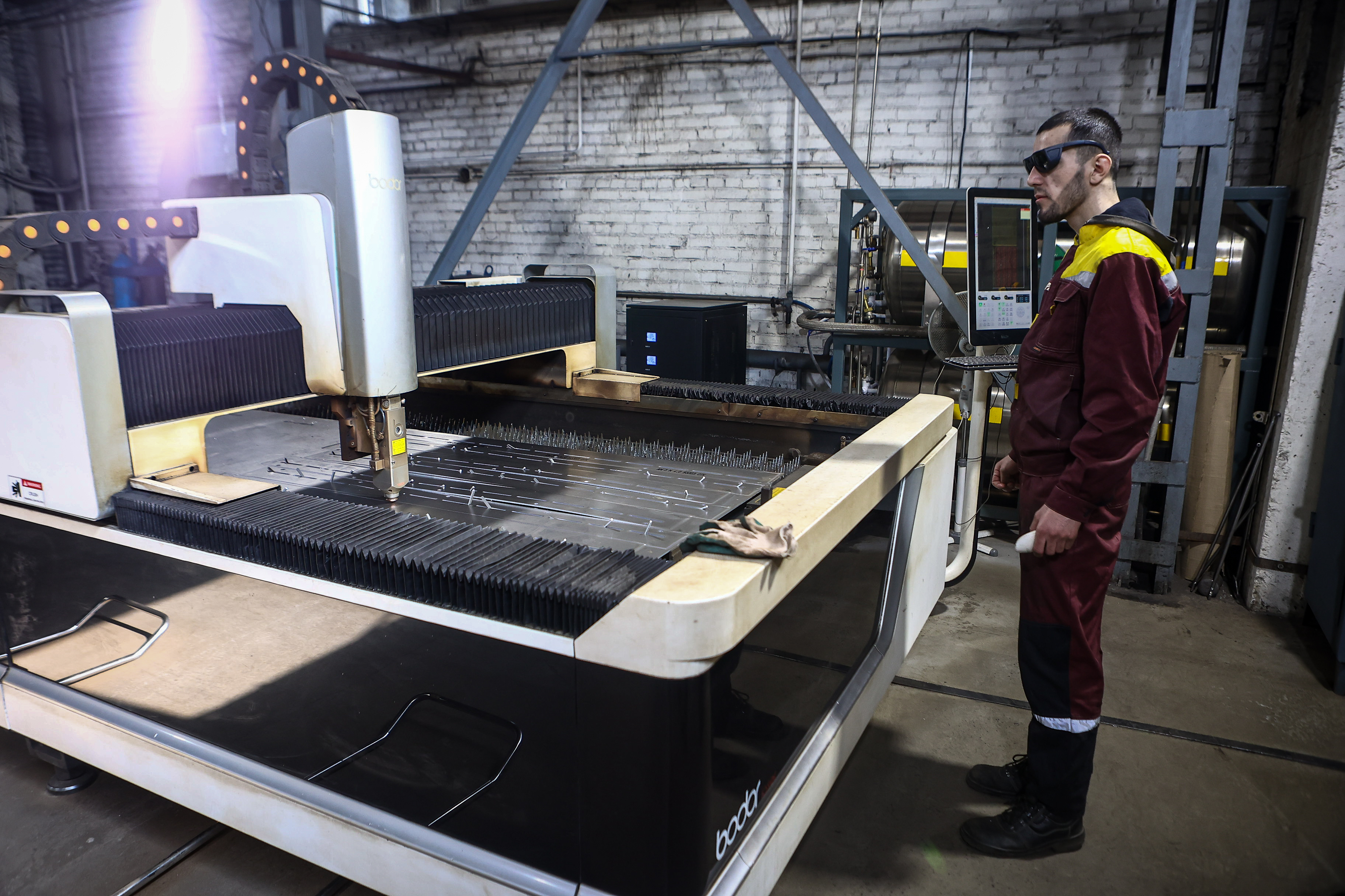 «Когда в 90-х годах промышленность переживала крах, предприятие сумело сохранить все производственные площадки, здания, станки, персонал, который остался. В 2000-е годы завод закупил большое количество всевозможного оборудования, в том числе станки для плазменной и лазерной резки, токарные и фрезерные станки с ЧПУ, сварочные роботы и агрегаты», — рассказывает начальник производства.
