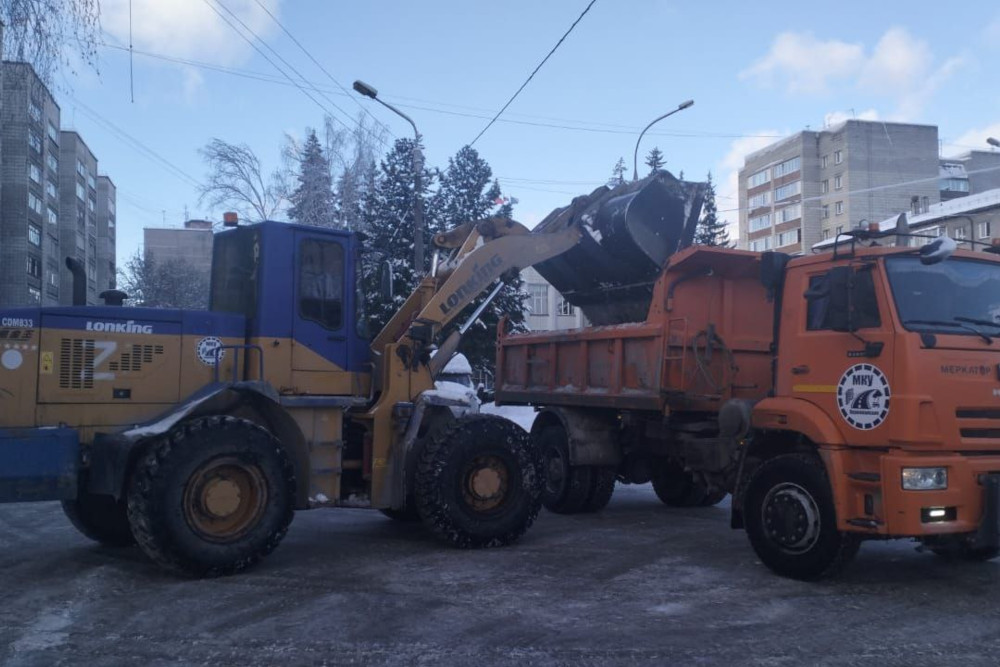 «В Кировском районе ДЭУ №4 ведёт работы по погрузке и вывозу снега на улице Мира от улицы Ватутина, лаповым снегопогрузчиком на улице Мира от улицы Ватутина к ДК имени Ефремова и силами подрядной организации на улице Петухова», — рассказали в городской администрации.