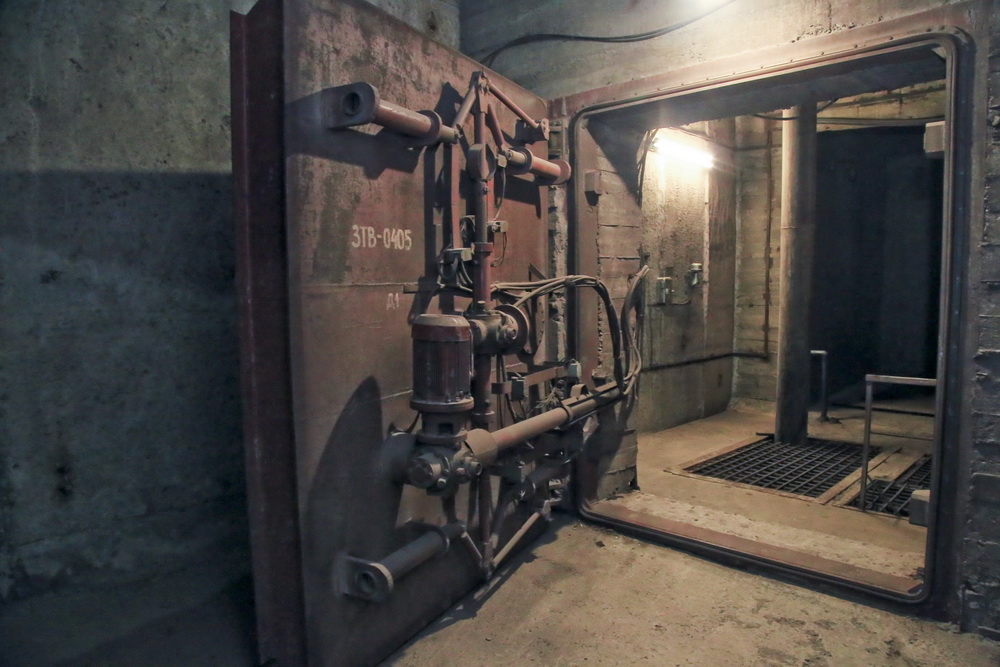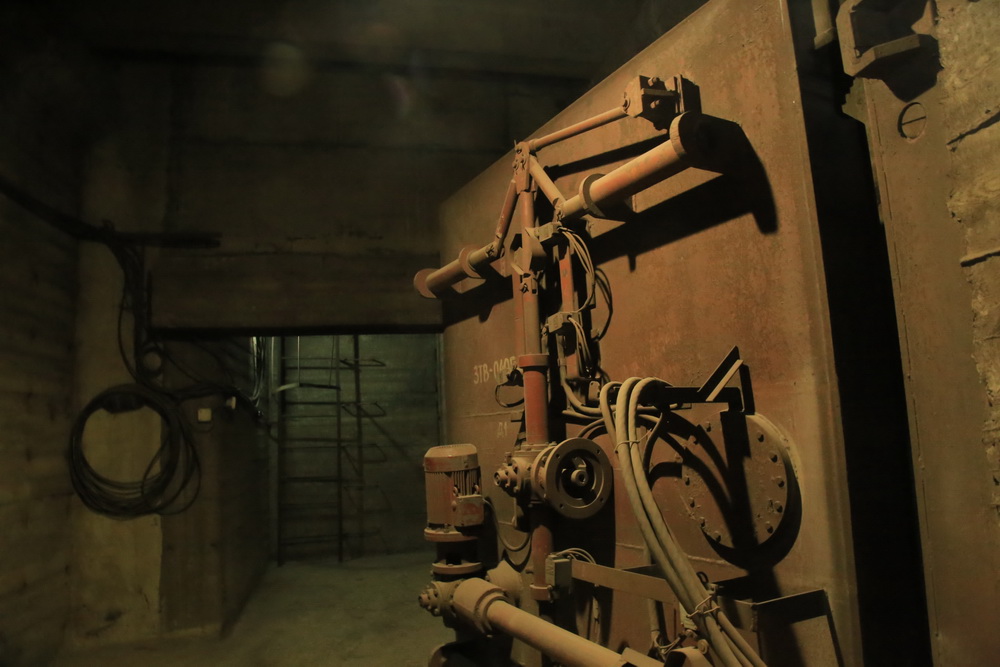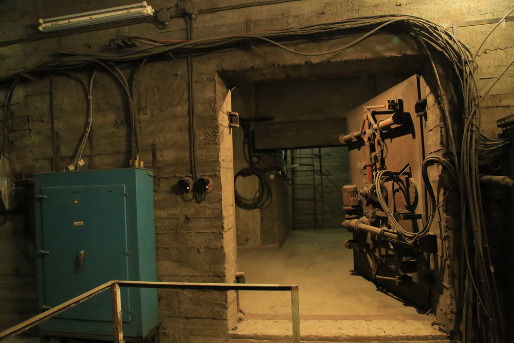 Первое, что предстаёт перед глазами спустившегося, это гермозатвор — мощная железная дверь на случай ядерной войны. Летом затвор отрыт, но на зиму его закрывают, чтобы не выхолаживать станцию.