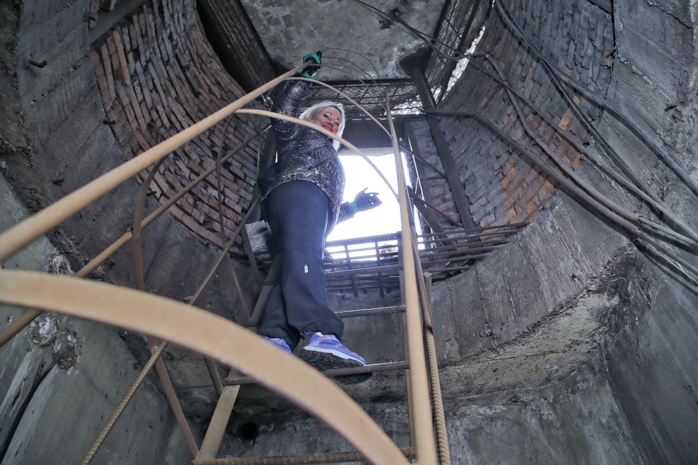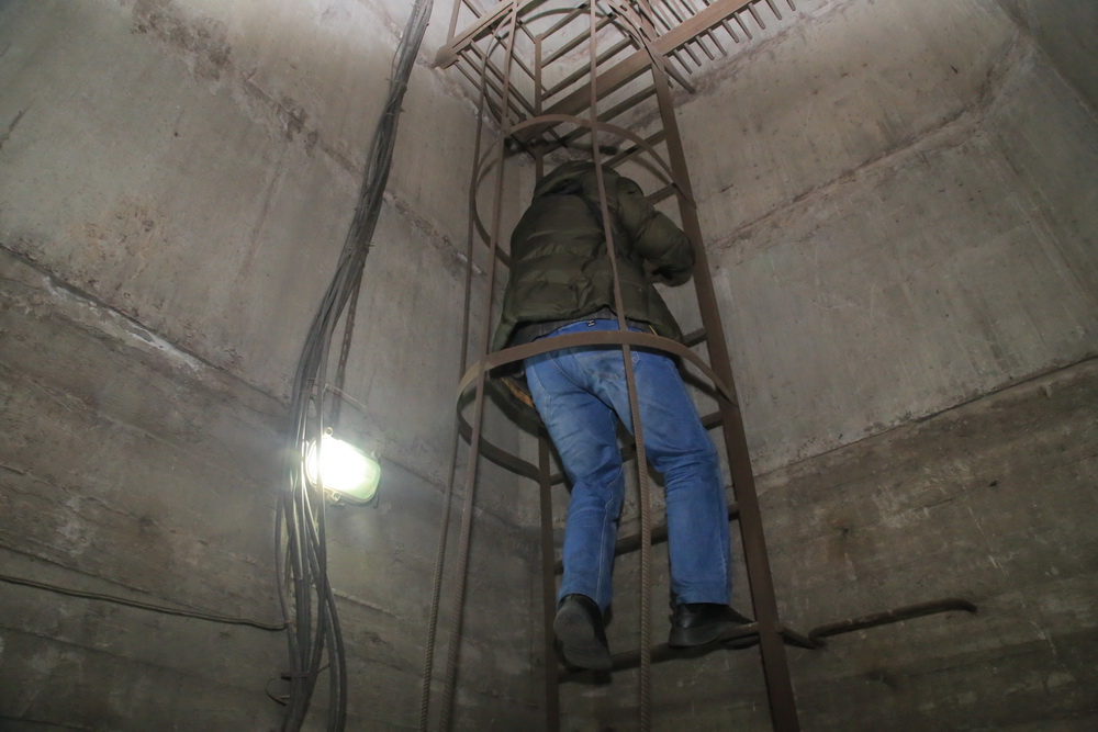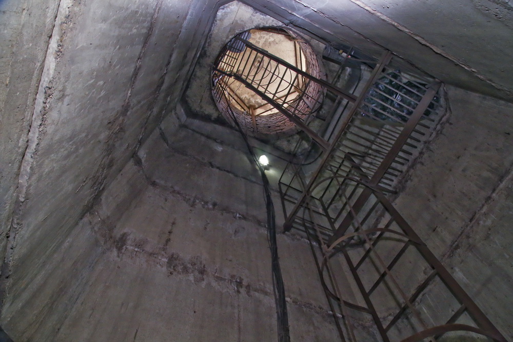 Вертикальная железная лестница спускается на глубину 15 метров.