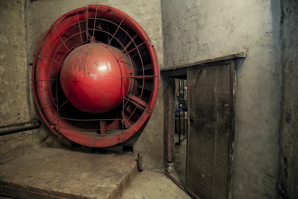Неприметная дверь между киосками в вестибюле станции «Заельцовская» ведёт в помещение, где расположены два огромных тоннельных вентилятора.