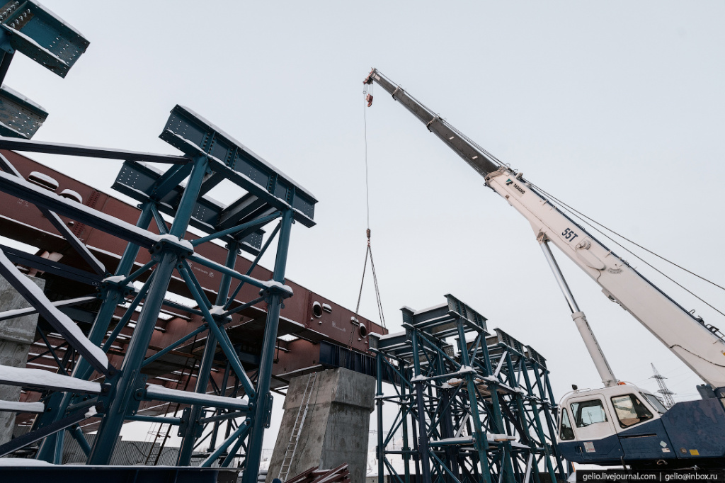 Стройка идёт параллельно существующему железнодорожному мосту.