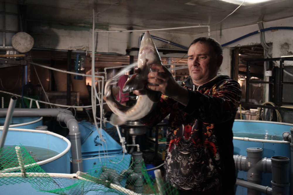 Максим Казаков разводит осетров двух видов — русско-ленского и калугу. Есть и бассейн со стерлядью, от которой фермер планирует через год получать икру.