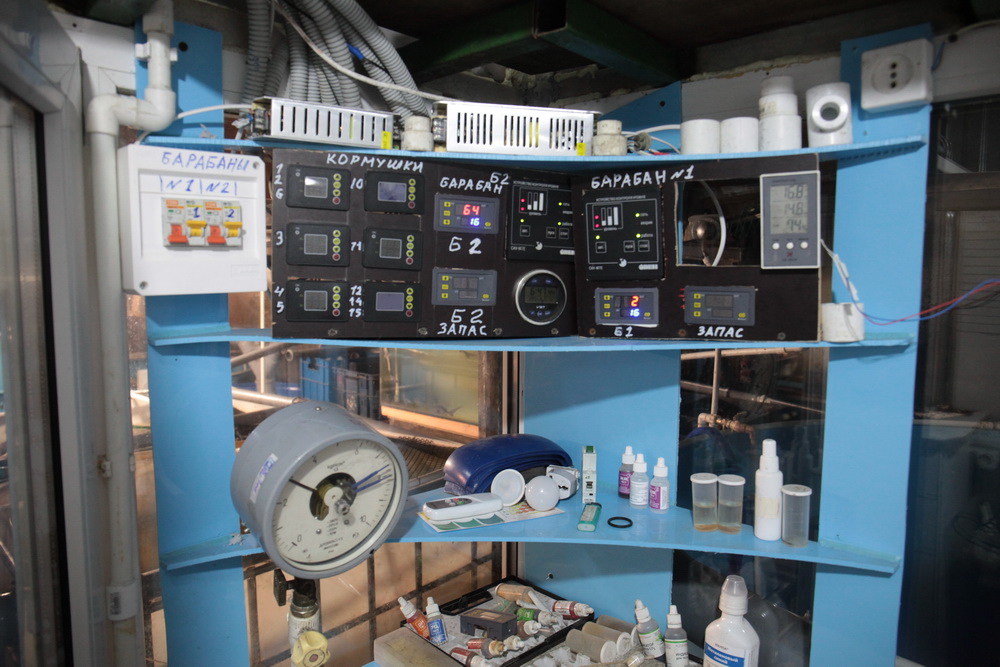 Ферма представляет собой установку замкнутого водоснабжения — УЗВ. В рыбоводных бассейнах и в технических ёмкостях помещается около 30 кубометров воды. По словам владельца, это скромные масштабы. Например, у его коллеги, который продаёт мальков, ферма рассчитана на 200 кубов воды.