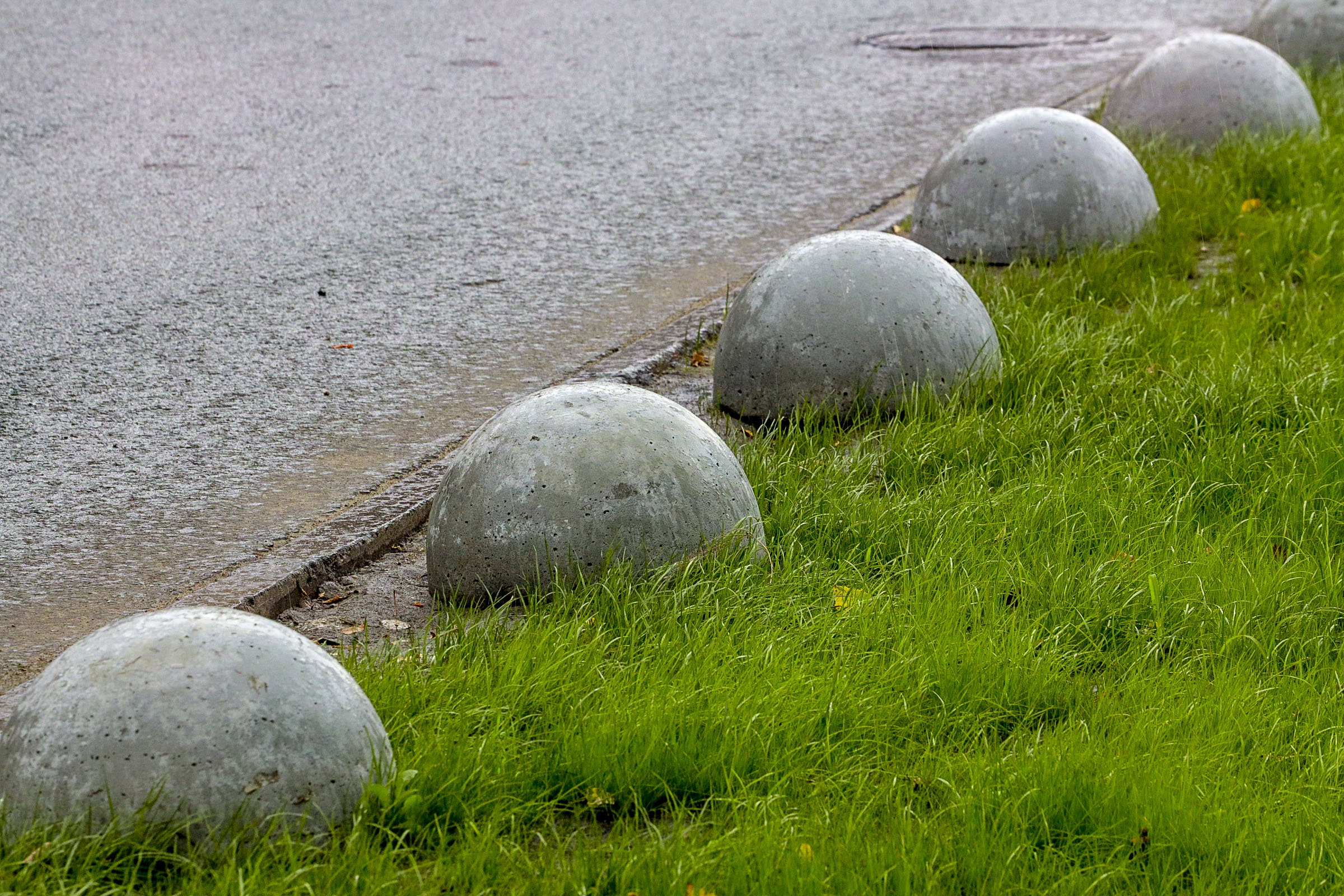 Кстати, чтобы уберечь проклюнувшуюся зелень от любителей на ней парковаться, в городе стали размещать бетонные полусферы. Центральному округу выделили 2300 штук.
