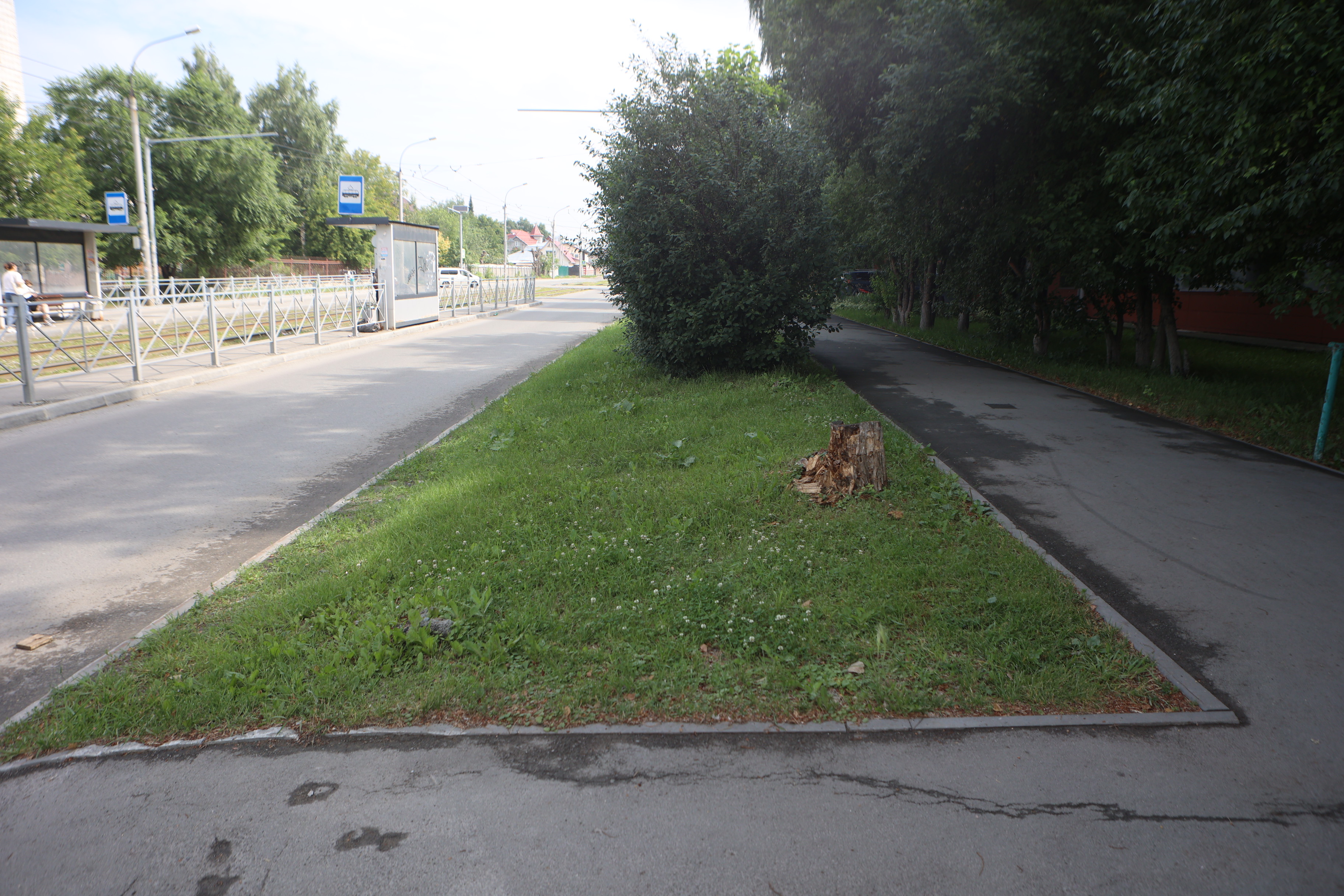 Сменила имидж в этом году улица Моторная у остановки «Лесоперевалка». Газон здесь был практически утрачен: трава на площадке уже не росла, а почва выступала над бордюрным камнем на 20 сантиметров.