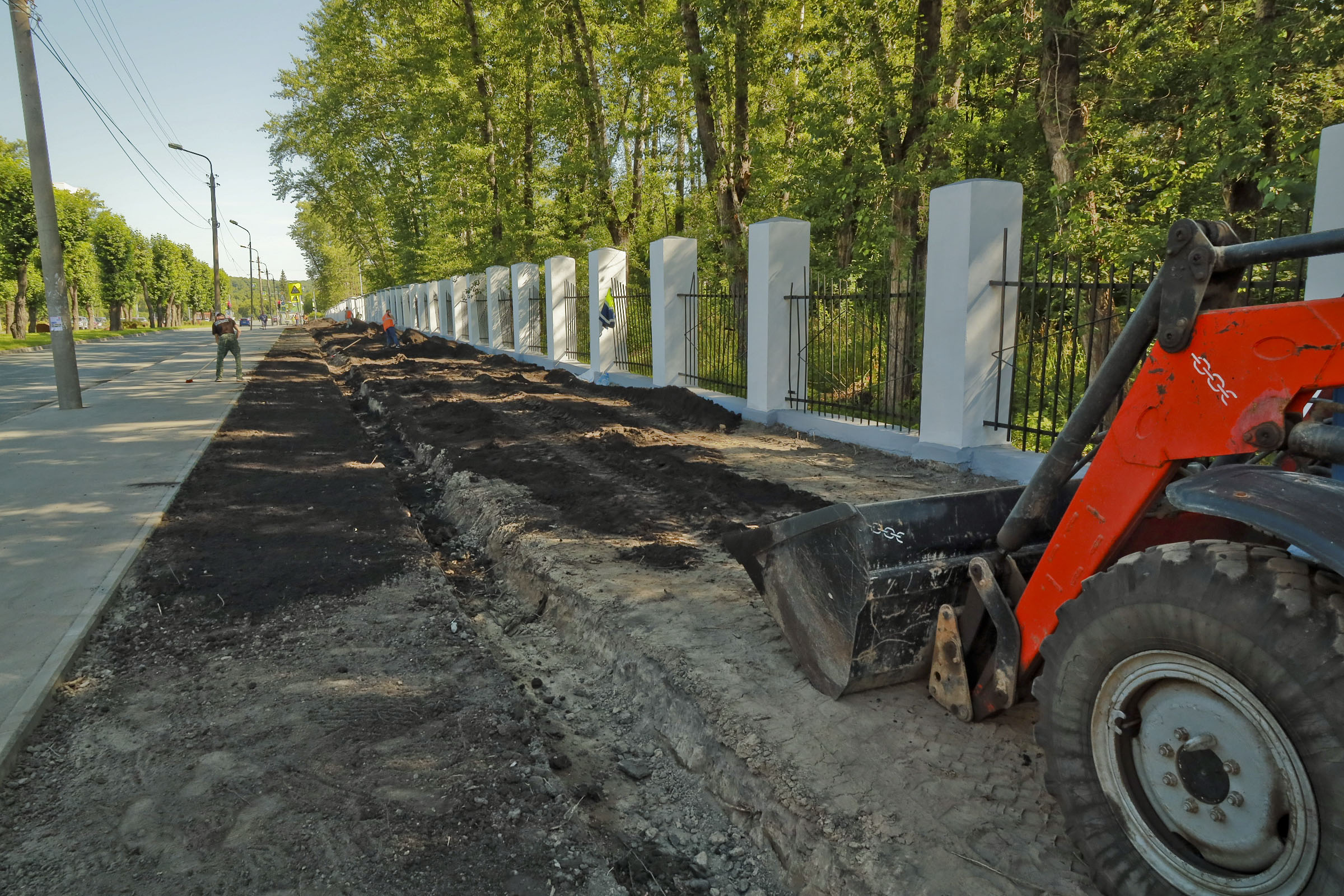 В этих местах заменили грунт, обновили бордюры, посеяли траву, в дальнейшем планируют высадить деревья — ели и липы. Оценить промежуточный результат вы можете сами.