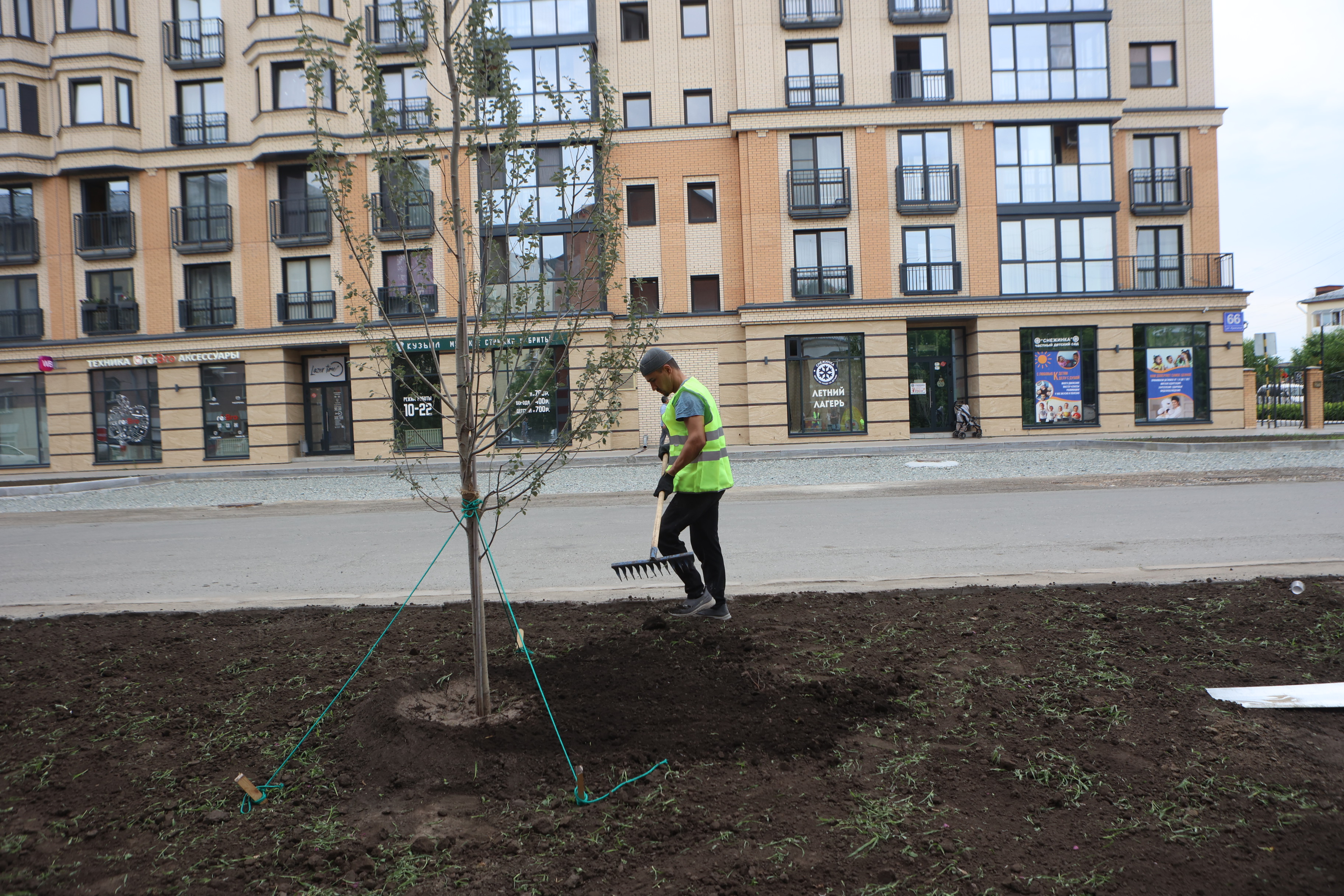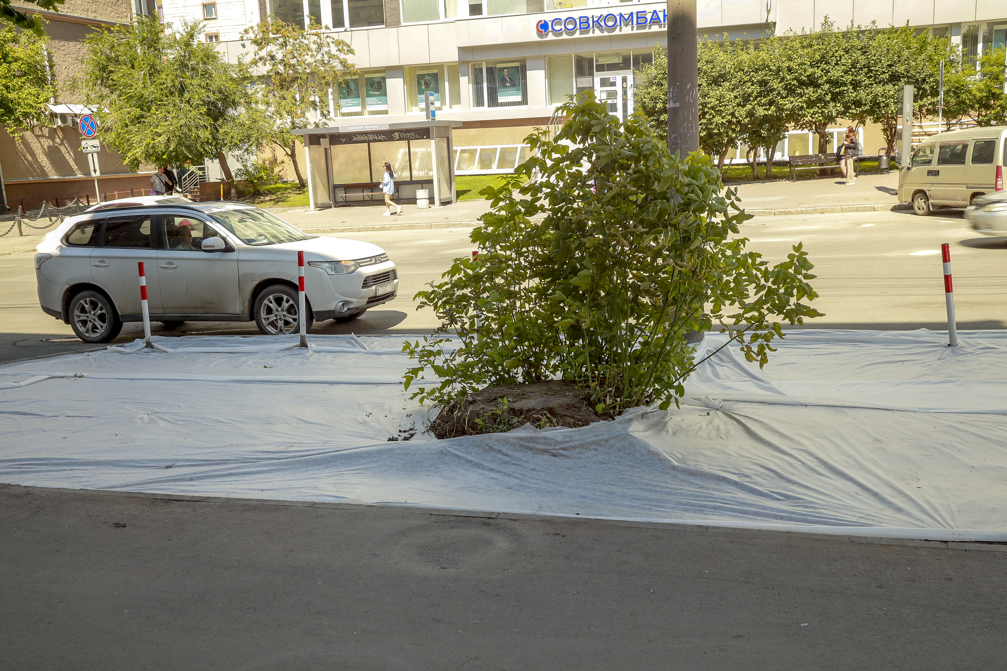В предыдущий раз наш фотограф снимал это место во второй половине июня, когда озеленительные работы были в самом разгаре. Запечатлели мы и итог.