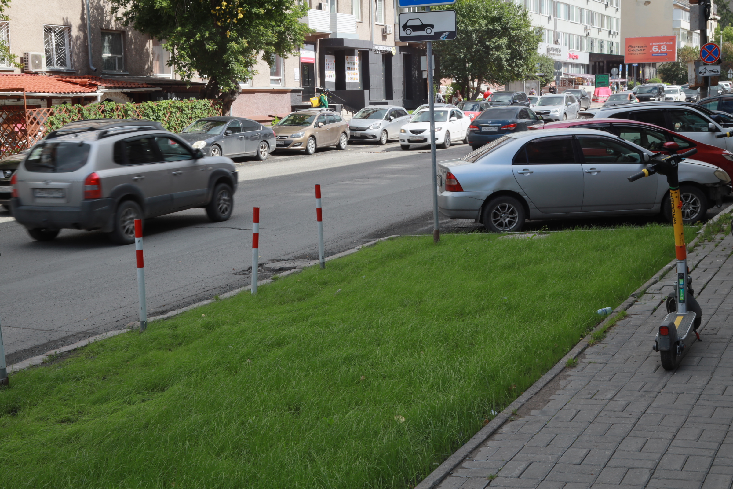 Их установку в первых числах августа символично начали с улицы Плановой, где трава тогда только стала всходить, но уже нашлись желающие на неё заехать.