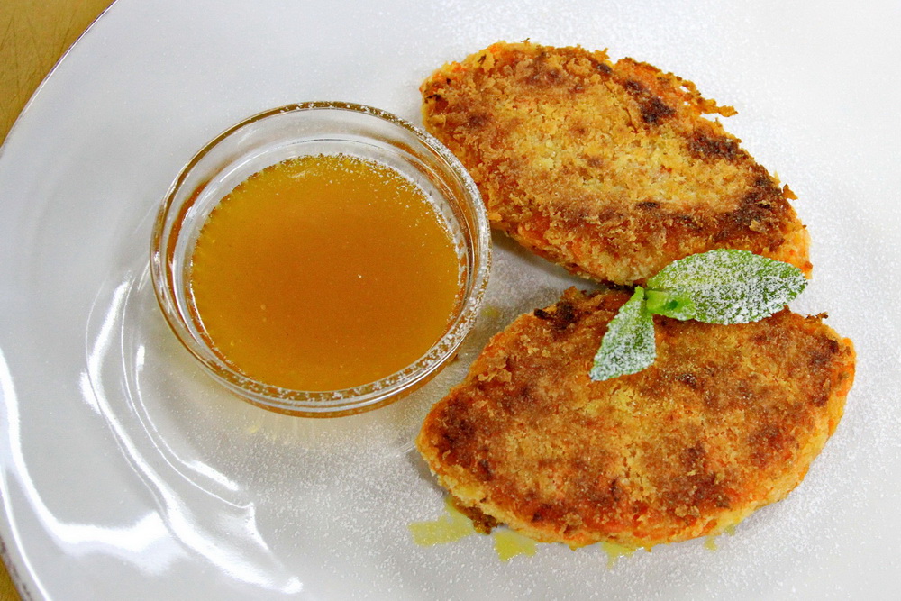 Морковь натереть на тёрке или измельчить в блендере, добавить полстакана манки, мелко нарезанные зелёный лук и чеснок, смесь измельчённых орехов и семечек, соль, молотый чёрный перец и специи по вкусу — паприку или карри. Перемешать и оставить морковный фарш на полчаса, чтобы манка набухла.