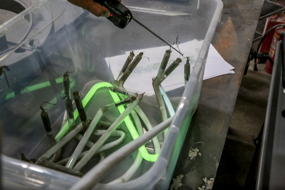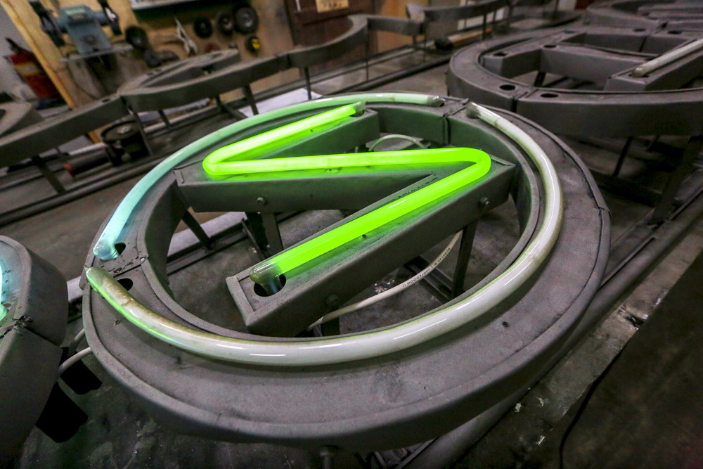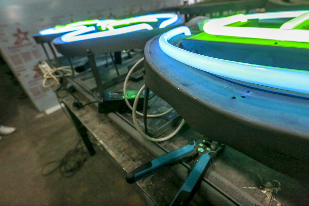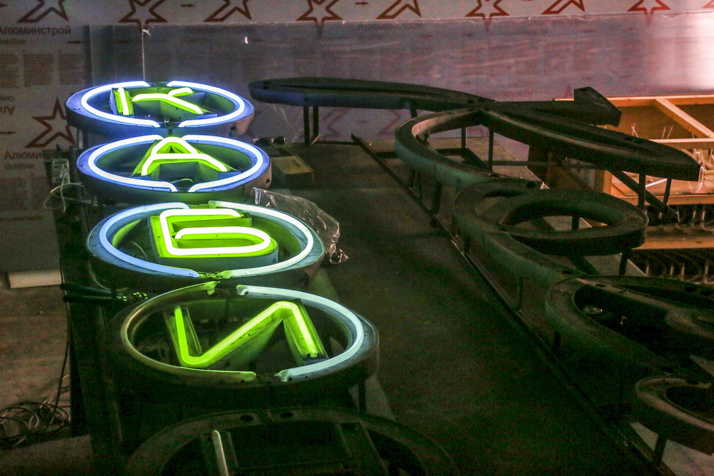 Надпись убрали и перевезли в цех. Реанимировать начали не сразу, работы шли постепенно. Несмотря на то что советская технология неона практически утеряна, в Красноярске нашлась производственная компания, которая согласилась по чертежам сделать стеклянные трубки. И всё получилось.