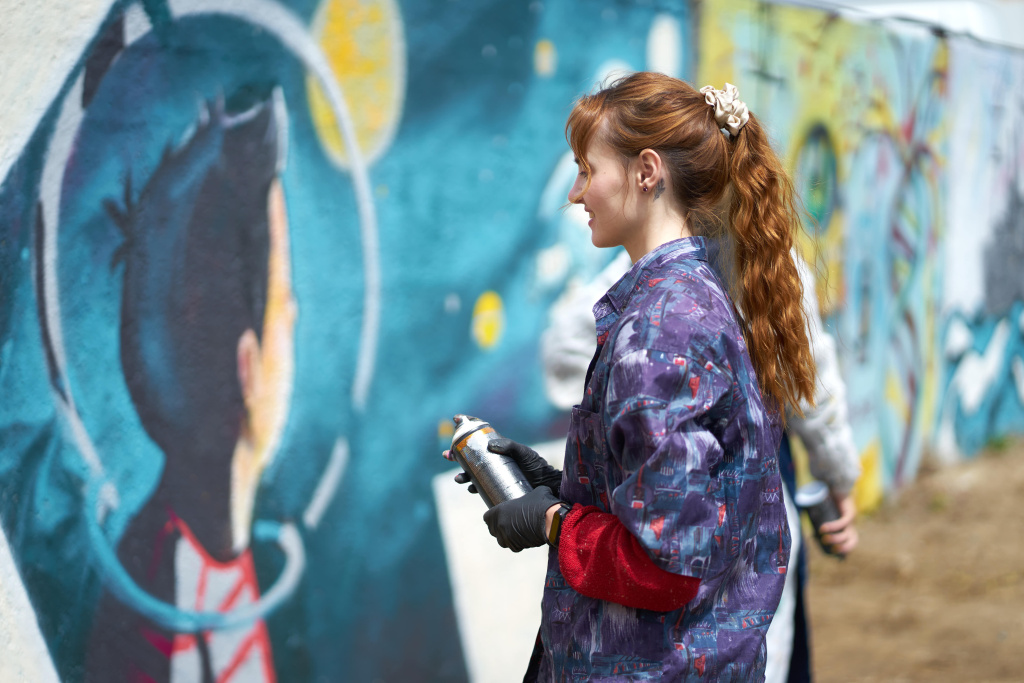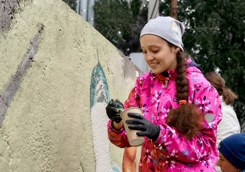 «В прошлые выходные мы с девочками рисовали Ермака, в эти — Александра Невского. Я всегда рисовала за мольбертом, а на стене баллончиком — ни разу. Это очень прикольно. Папе показала фото, он сказал, что классно!» — делится эмоциями юная художница.