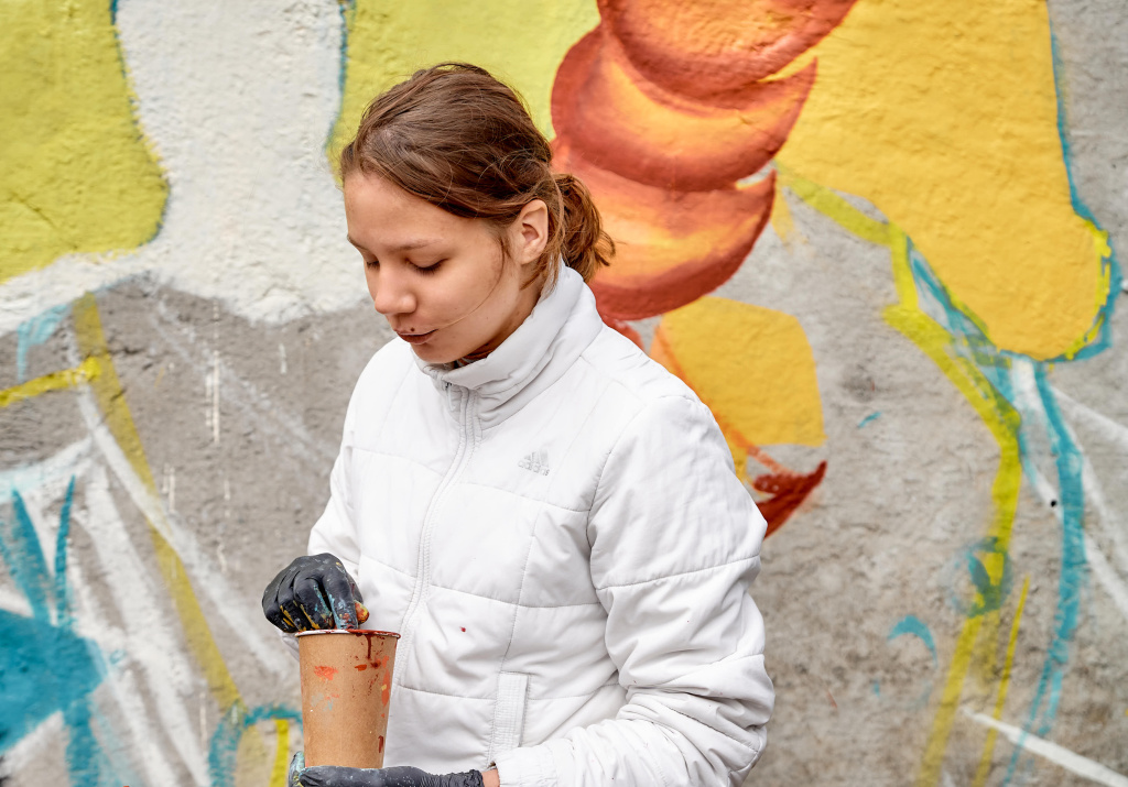 В работе на стене много нюансов: это другой масштаб. Плюс много технических особенностей: например, краску в банках можно смешивать и получать новые оттенки, а из баллончиков — нельзя. Как рисовать на стене — участникам рассказывает художник Алексей Асеев. У него такой опыт есть. Правда, по мнению Алексея, все эти работы — никакое не граффити.