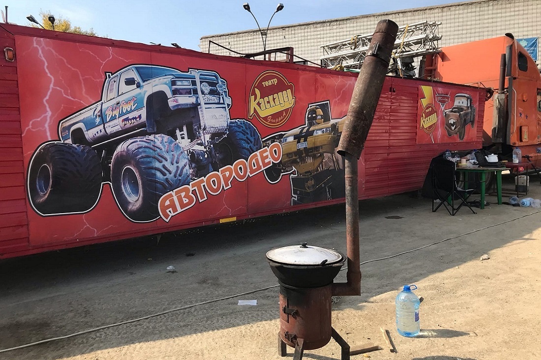 «Грузовик внешне — это американский тягач. Наши умельцы разработали систему, благодаря которой он превращается в робота. Аналогов такой машины в мире нет», — отметил администратор театра «Каскадёр» Артём Замосковцев.