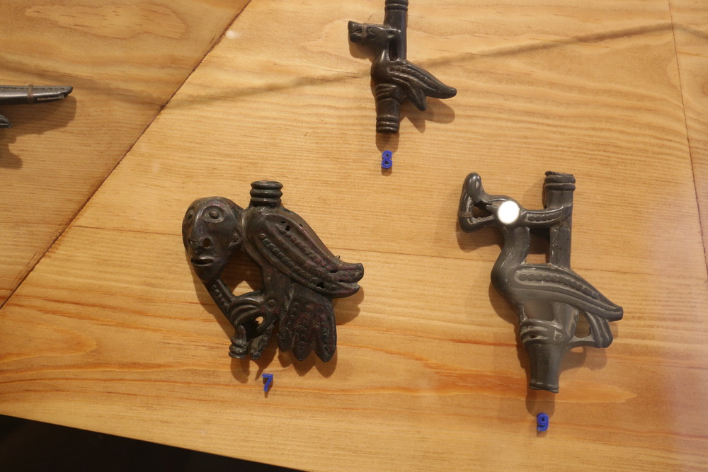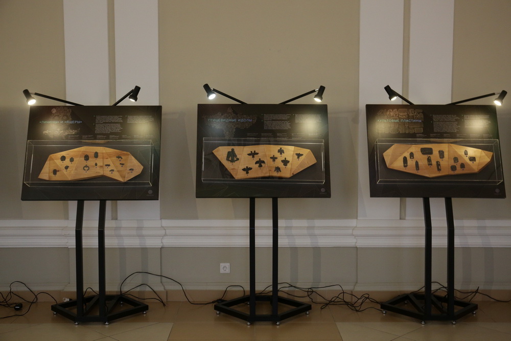 Раскопки памятника завершили в этом году. Сейчас результаты экспедиций можно увидеть в краеведческом музее. Здесь же — более сложные фигуры: пермский звериный стиль. Тонкая работа — мельчайшие детали, сложный орнамент. Всё это лили из расплавленной бронзы полтора тысячелетия назад. Следы цивилизаций, которые существовали на территории Сибири в Средние века.