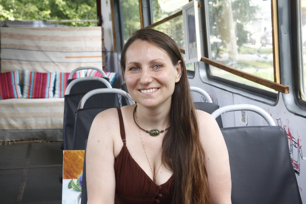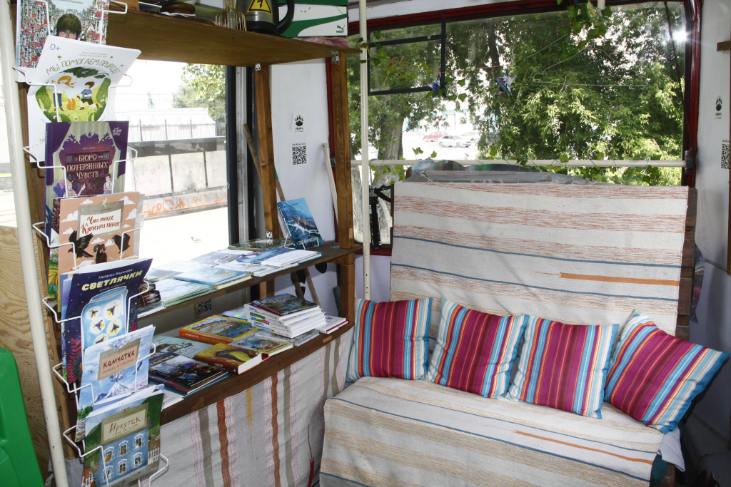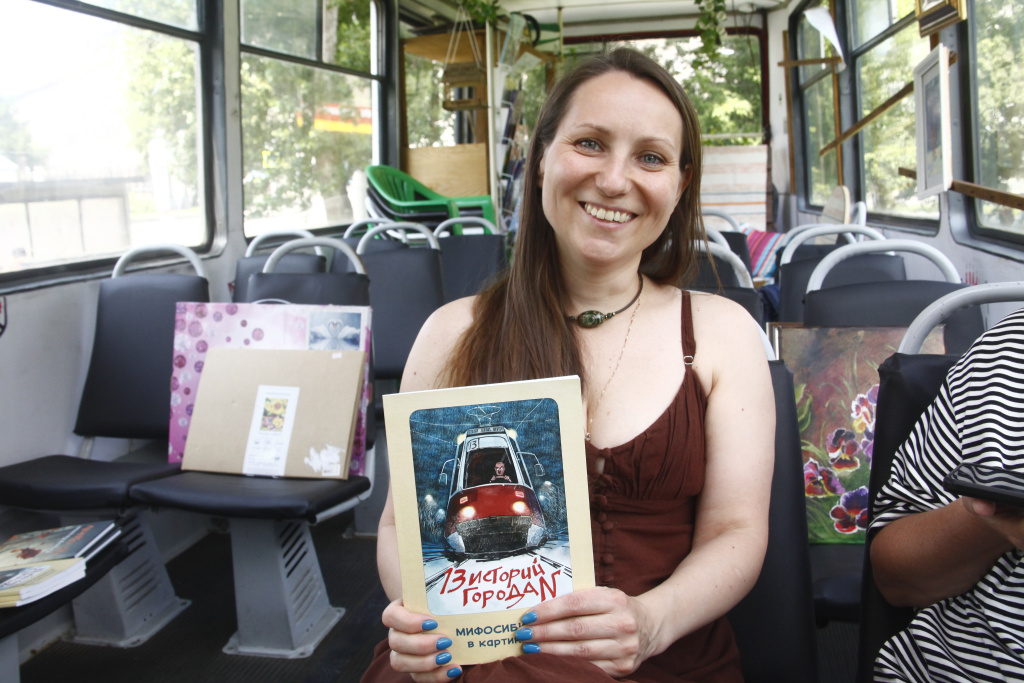 Непосредственно в арт-объекте «Трамвай №13» мы разместились в 2023 году. Тогда он уже год, как памятник, стоял в сквере за оперным театром. Идея обосноваться здесь возникла у моего помощника, мне она не сразу откликнулась — показалась странной. Помню, как подумала: «Там ни электричества, ни воды, ни стеллажей под книги. Работать будет неудобно».