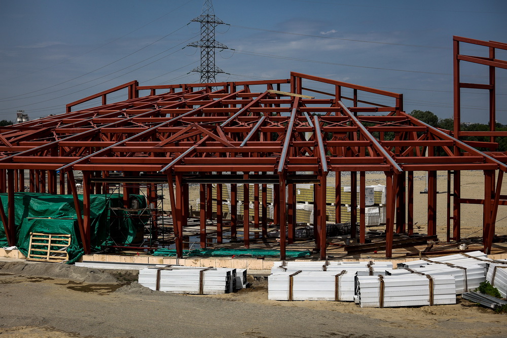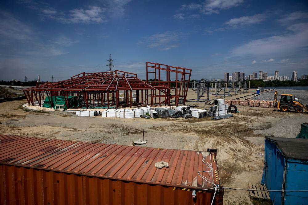 В самой широкой точке площадки смонтировали опоры для установки оборудования. Там разместят платёжные терминалы — по 11 в каждом направлении. Весь комплекс состоит из здания центра управления дорожным движением, навеса и перехода над рабочей зоной пункта оплаты. Строительство административно-диспетчерского корпуса находится на этапе каркаса.
