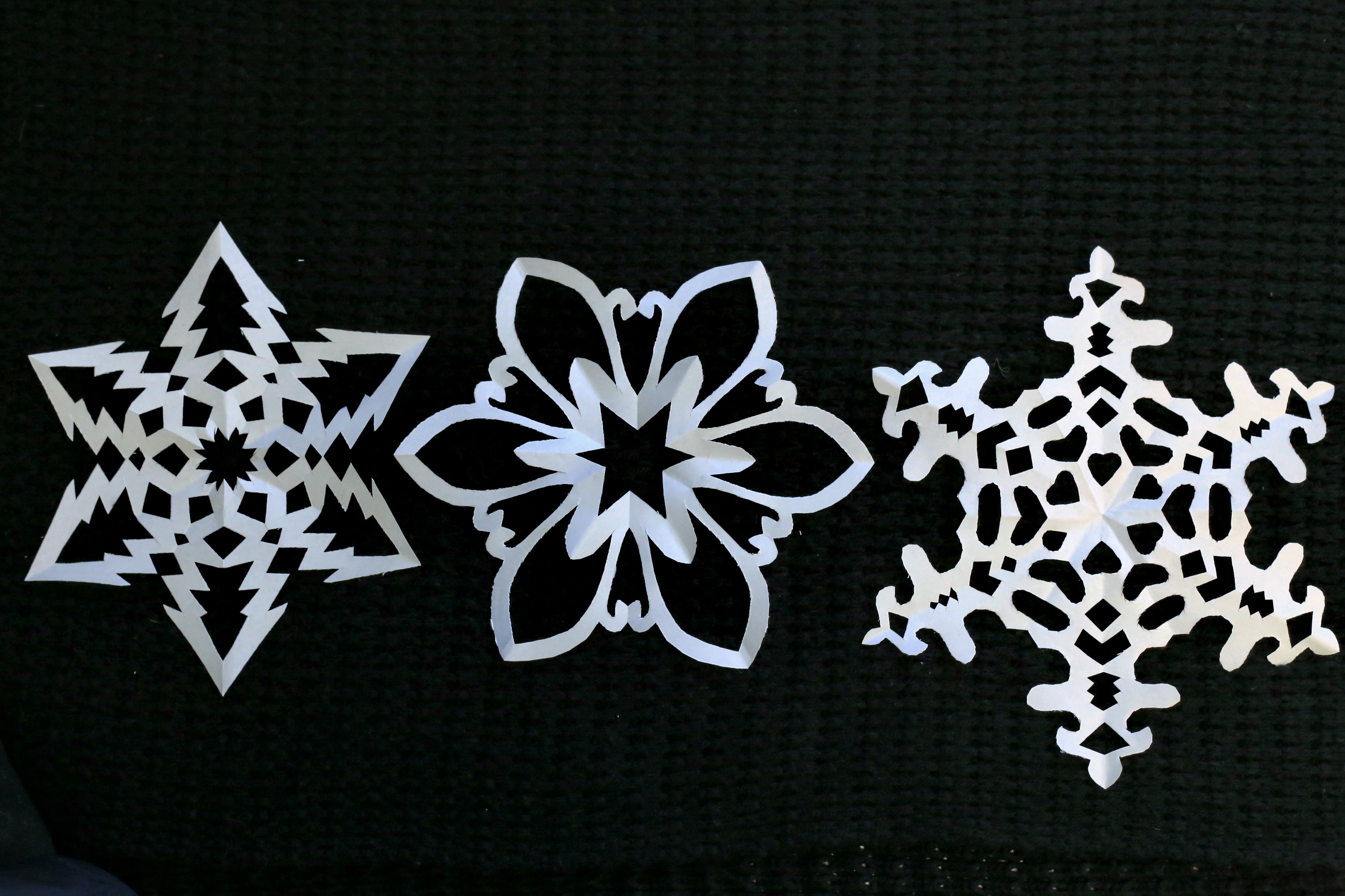 Разумеется, вы можете поискать схемы вырезания в интернете для того, чтобы потренироваться. Однако, когда вы поймёте принцип, вырезать по схемам станет неинтересно. Ведь самый главный момент во всём этом незатейливом деле — неизвестность. Вы не знаете заранее, что у вас получится, что вы увидите, когда развернёте снежинку. Главное — оставлять поменьше бумаги. Тогда снежинка получится лёгкой, ажурной и изящной.