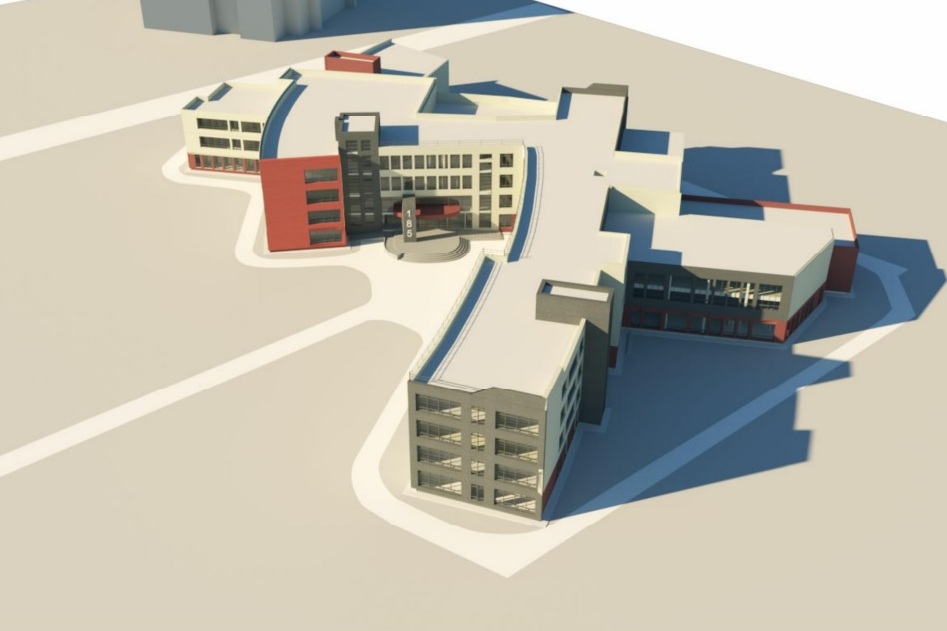 Общая площадь школы составит 25 500 кв. метров. Она рассчитана на 975 учеников. Добавим, что на территории рядом оборудуют футбольное поле и баскетбольную площадку.