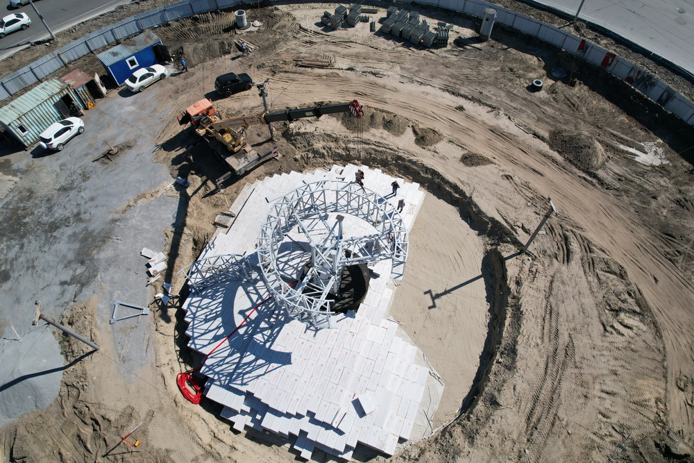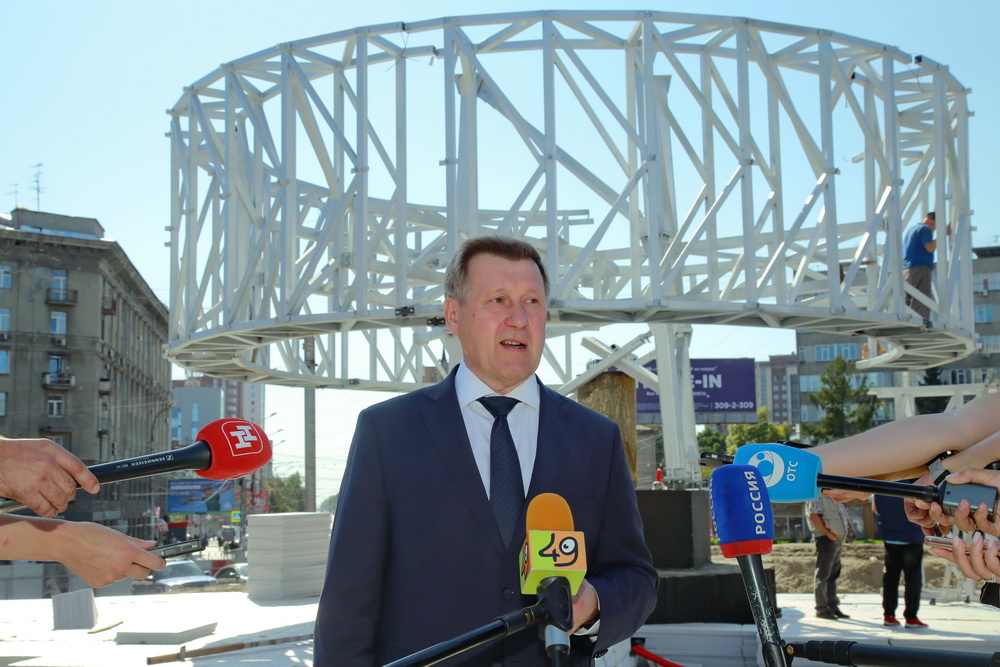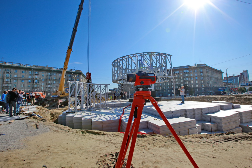Для стелы «Новосибирск — Город трудовой доблести» уже подготовили основание и собирают цилиндр, на котором разместят видеоэкраны. Обстановку на объекте оценил мэр Анатолий Локоть.