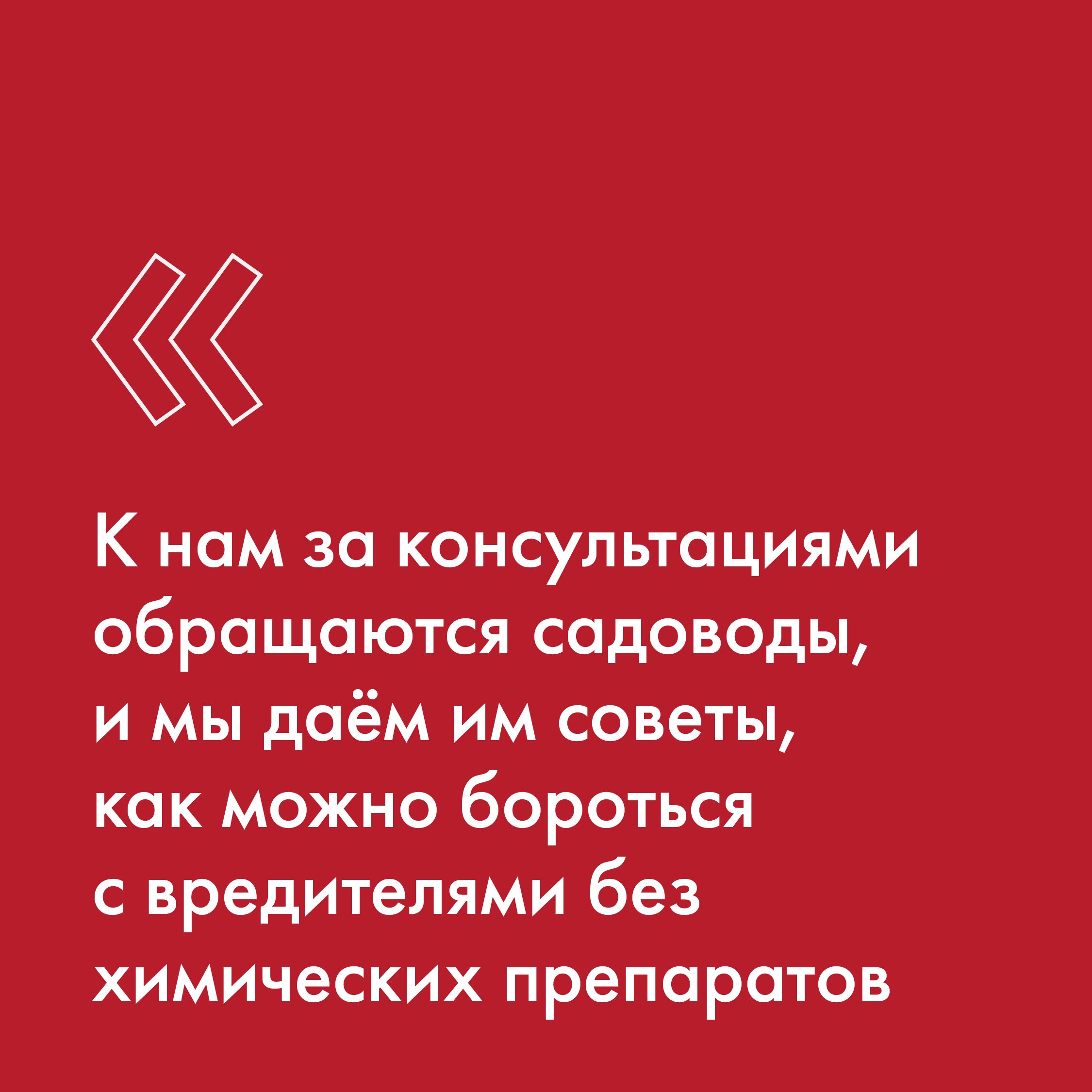 Хищник Фитосейулюс уникален тем, что уничтожает все стадии паутинного клеща: и яйца, и личинки, и взрослых особей. Растениям и человеку он никак не вредит. Если паутинного клеща не будет, то он погибнет. К нам за консультациями обращаются садоводы, и мы даём им советы, как можно бороться с вредителями без химических препаратов. Если какой-то хищник не сработает, то рекомендуем биологические методы.