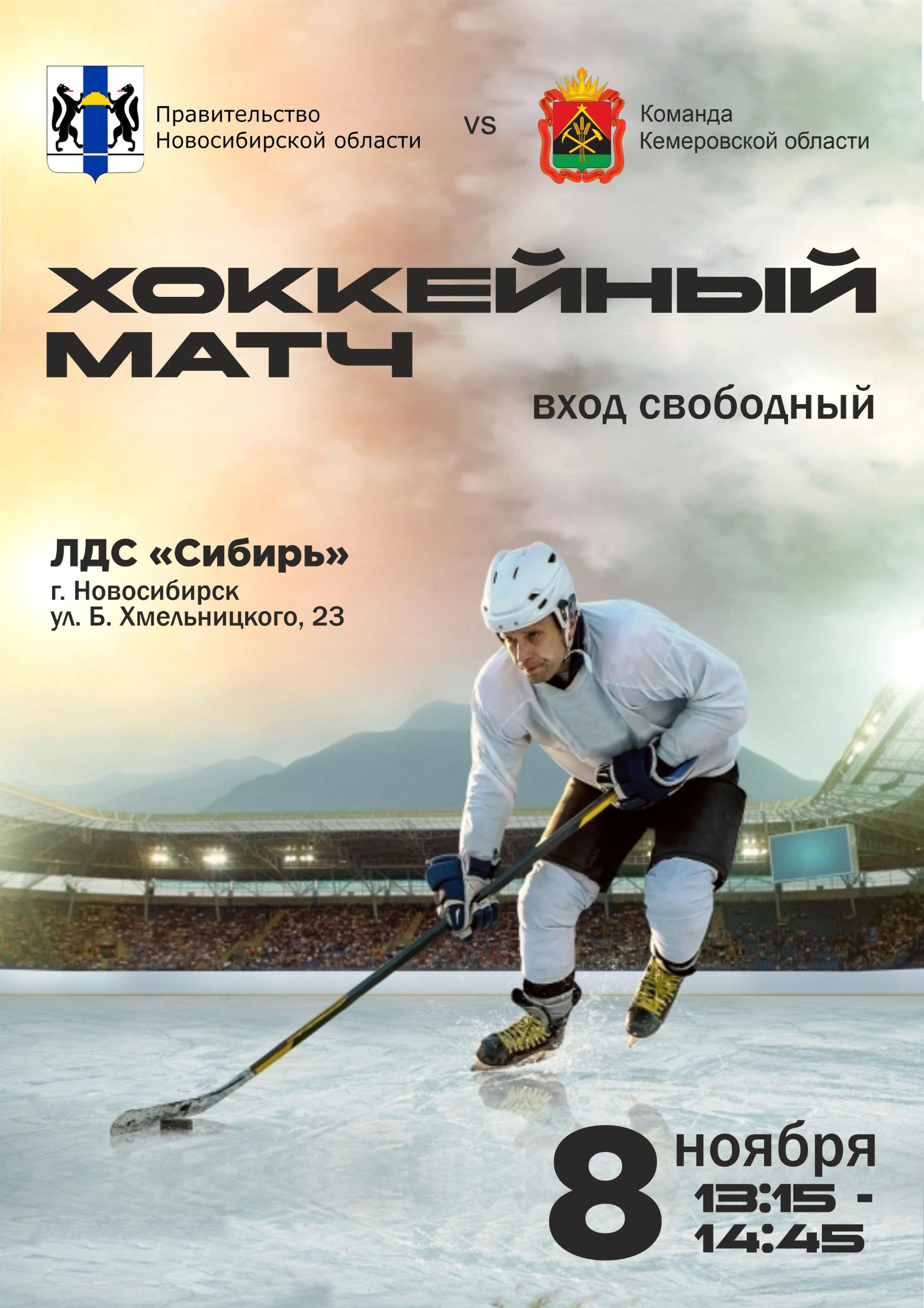 В субботу, 8 ноября, в ЛДС «Сибирь» на Богдана Хмельницкого пройдёт матч открытия регионального турнира по хоккею с шайбой. На льду встретятся сборные команды органов власти Новосибирской и Кемеровской областей. Новосибирцев приглашают поддержать нашу команду. Вход на игру бесплатный.