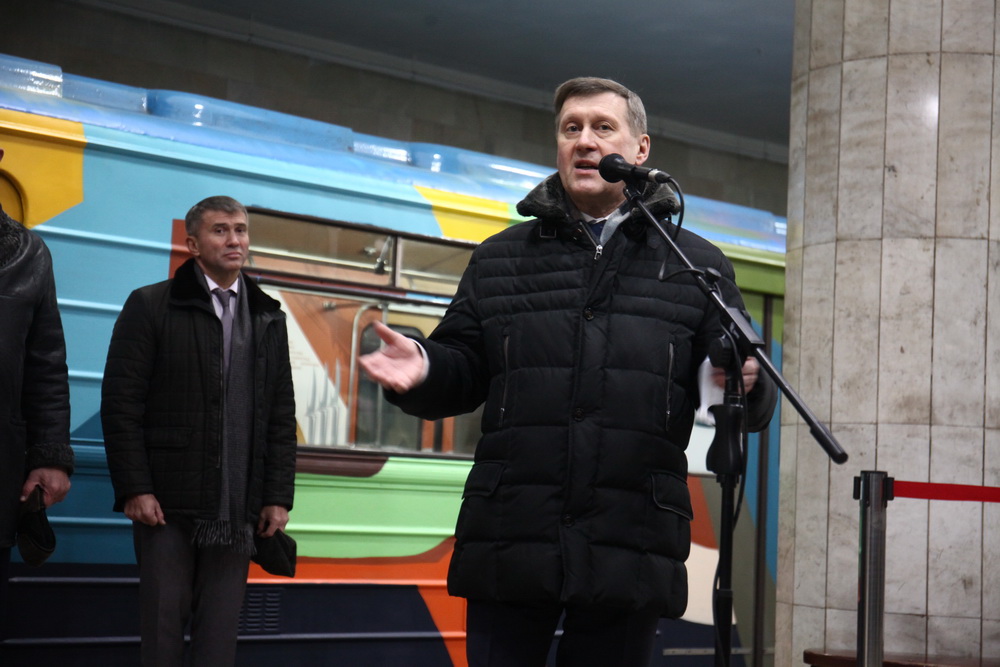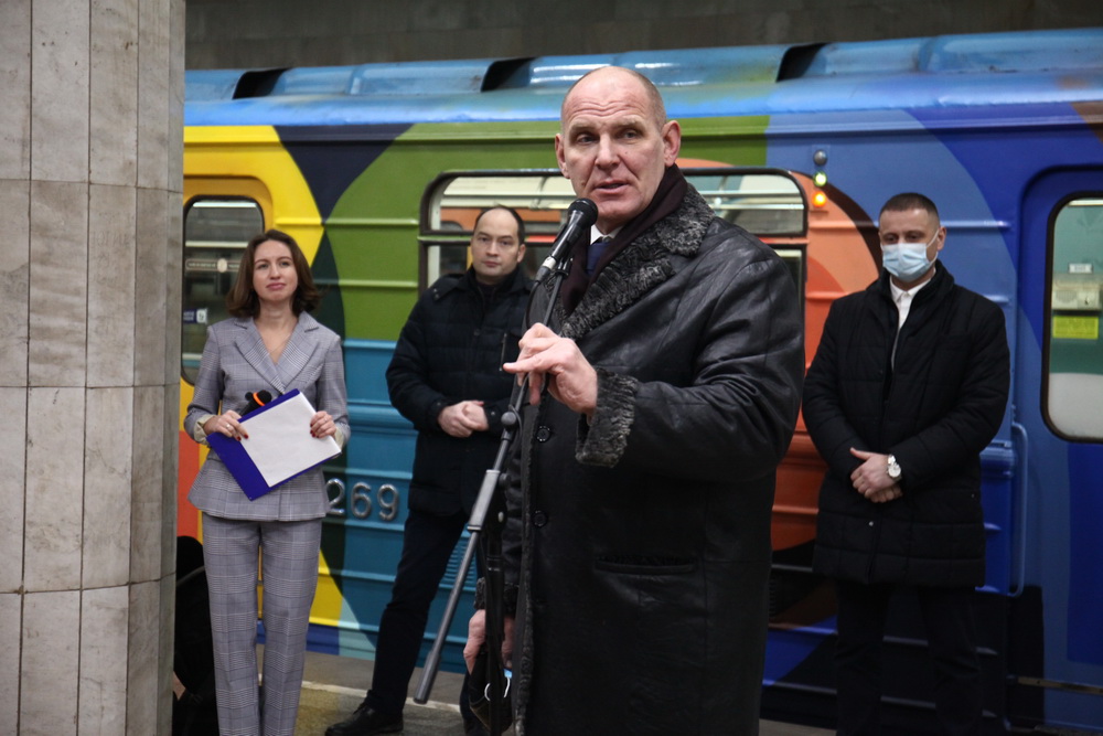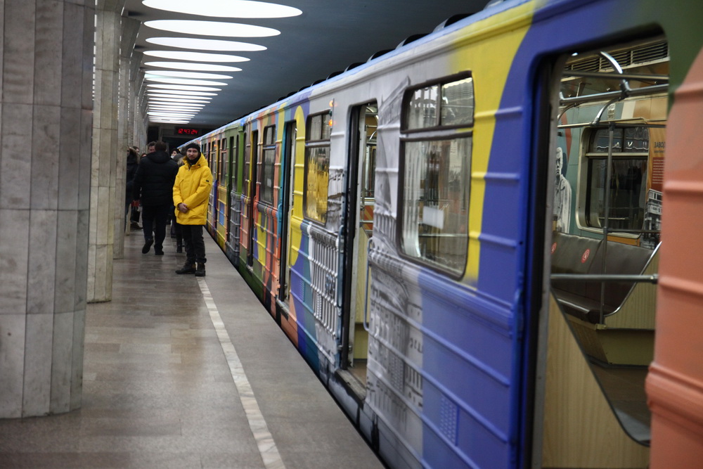 Художники разрисовали поезд трудовой доблести в метро Новосибирска