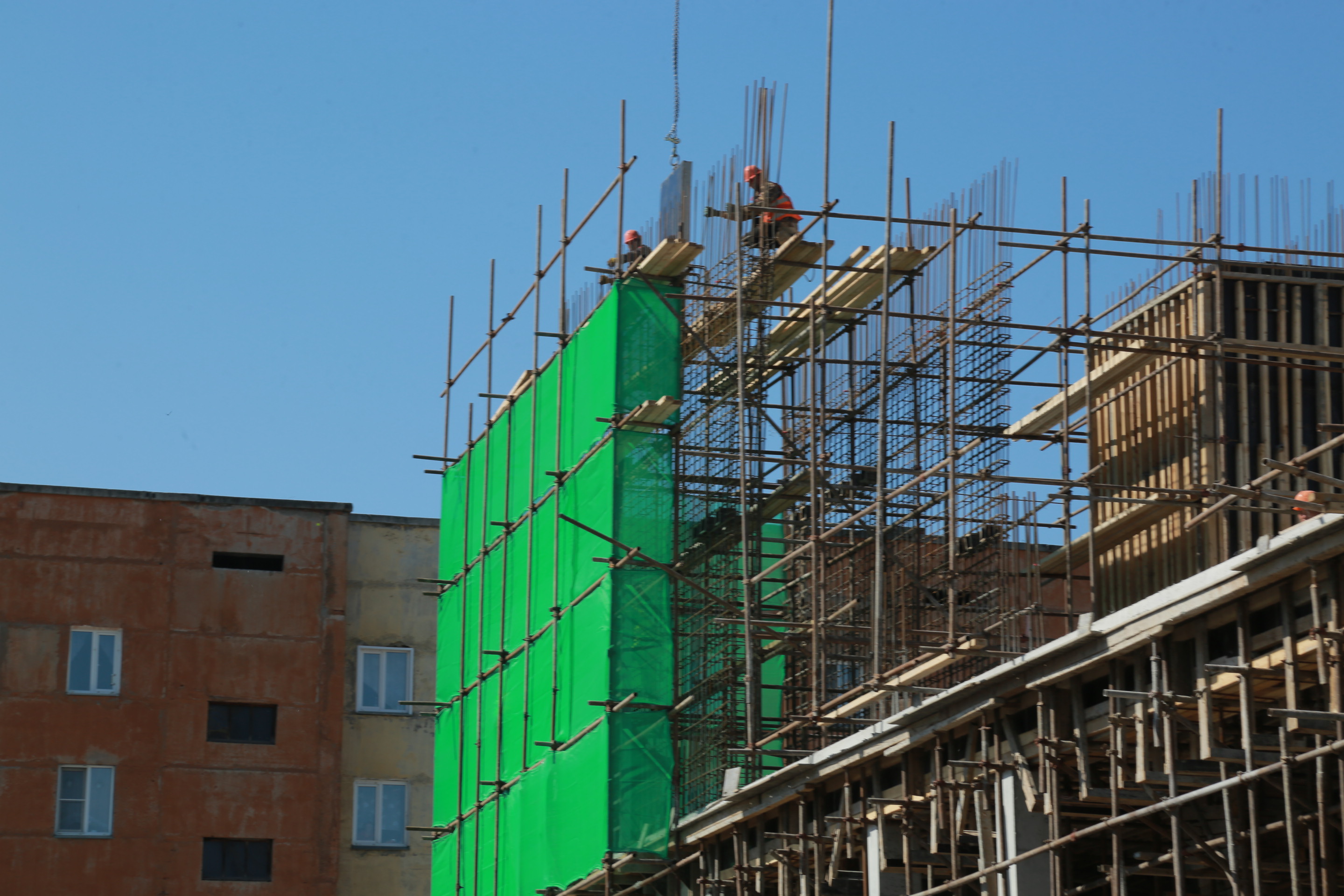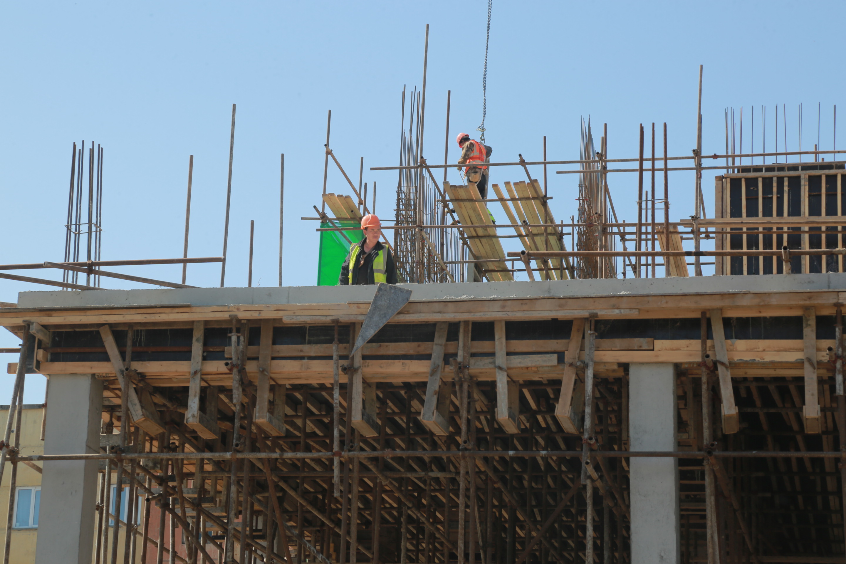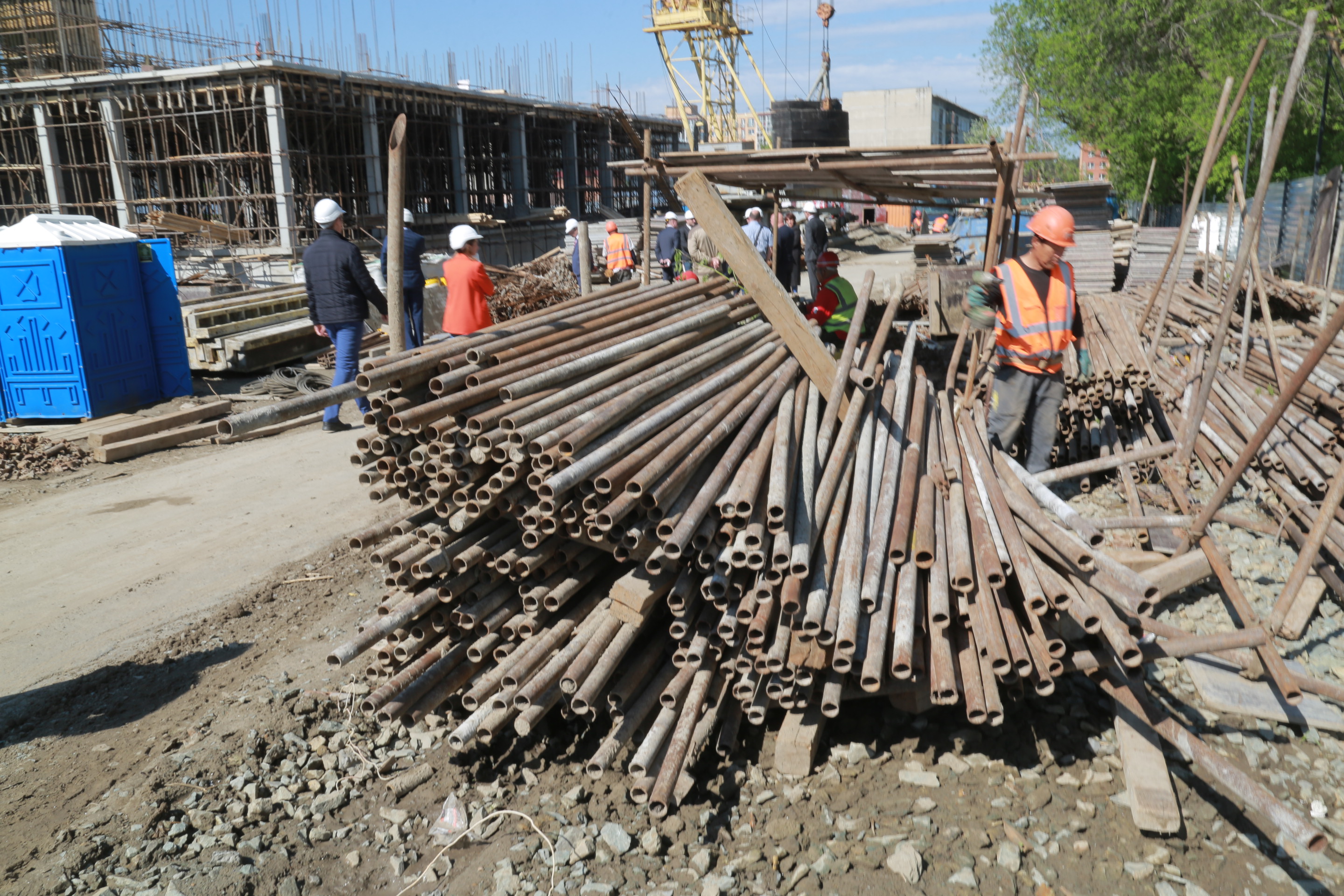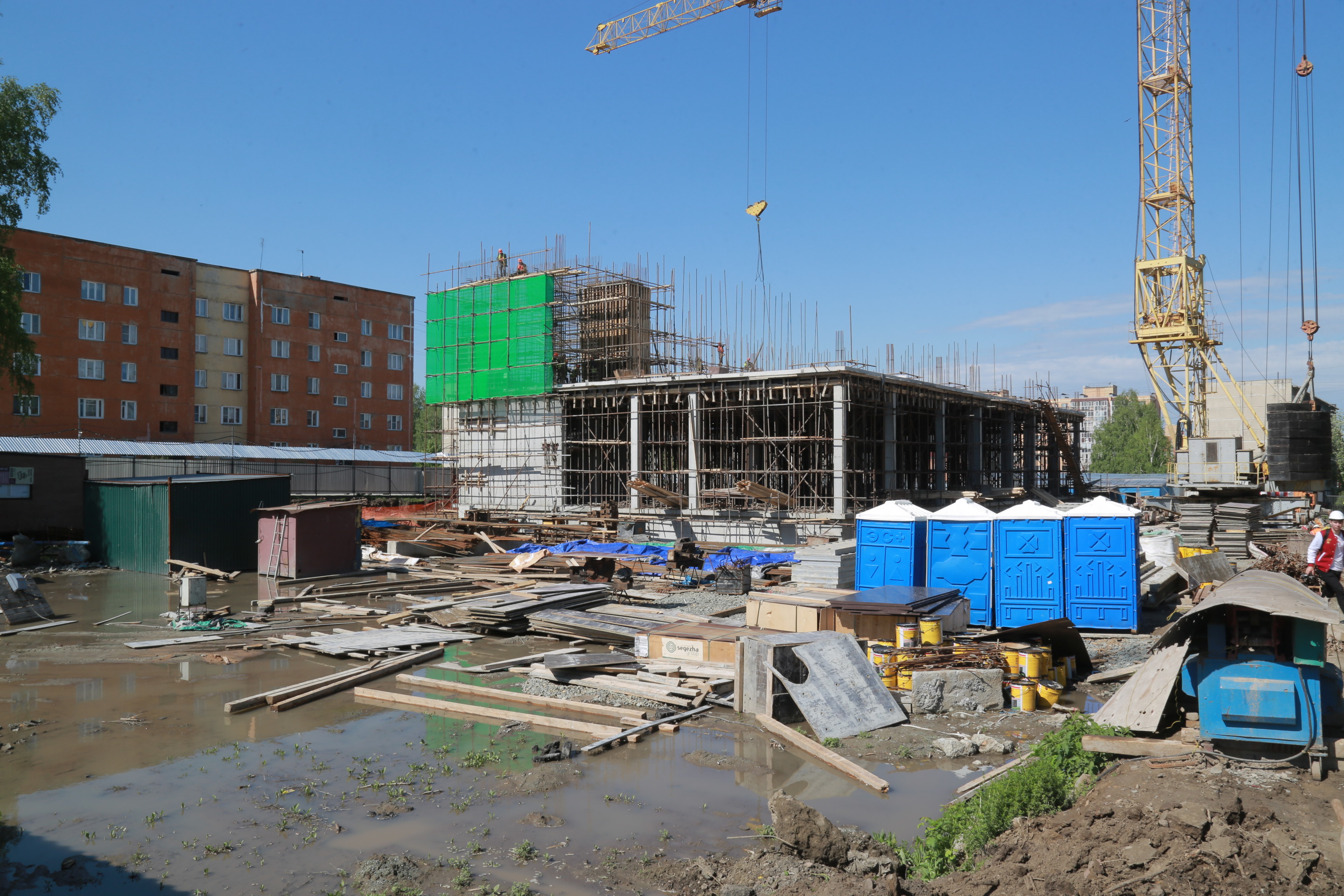 «Стройка идёт высокими темпами. Работают ежедневно более 100 человек, с продлёнками, без выходных. На стройке работает китайская компания, она выполняет работы по монолиту. Лучше китайцев и быстрее китайцев монолит не делает никто, поэтому здесь было принято решение привлечь китайскую компанию», — пояснил руководитель строительного предприятия Илья Поляков.