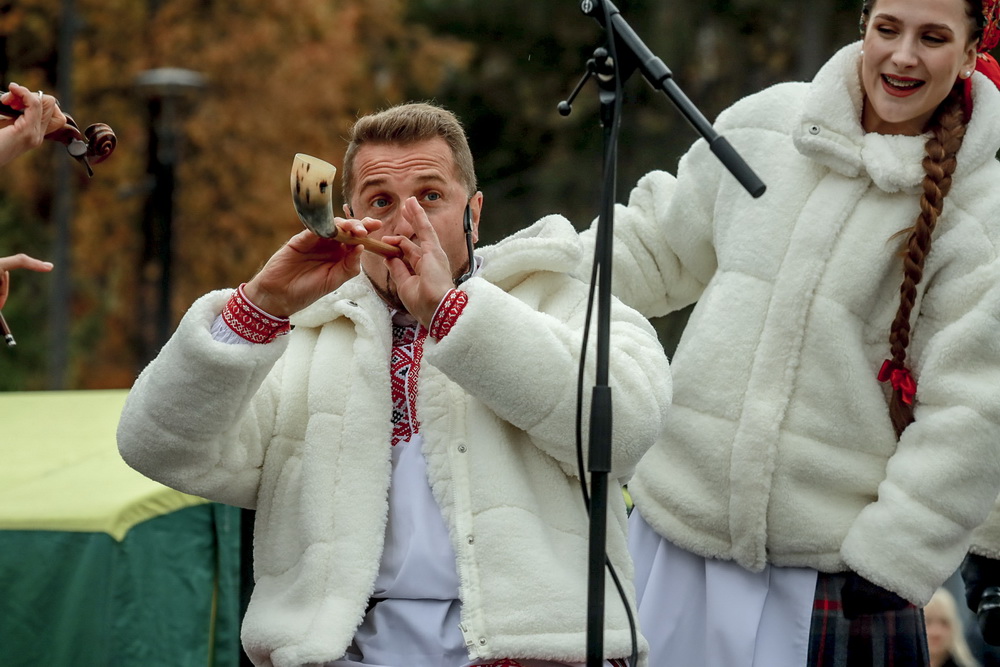 Колбасу с углём и маринованный чеснок предлагают на белорусской ярмарке