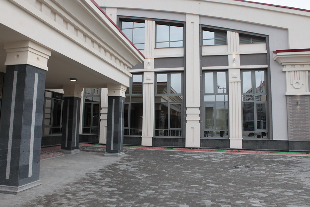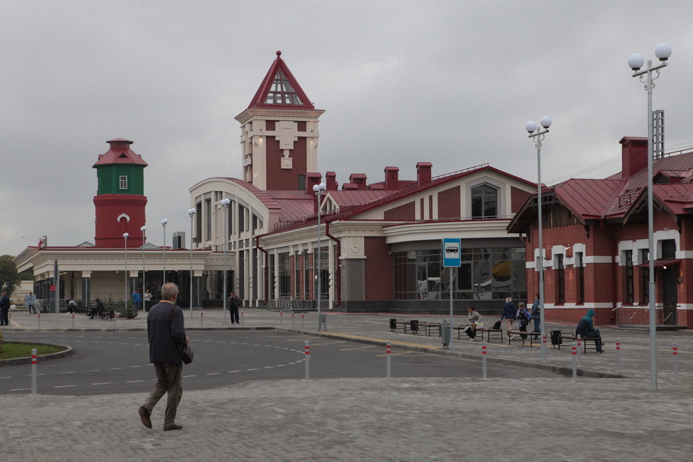 Новый вокзал разместили между старинным кирпичным корпусом и водонапорной башней. Оба исторических объекта отреставрировали. Кстати, стилистически все три здания перекликаются, формируя единый комплекс. Новый корпус имеет высокую башню с часами. Её венчает стеклянный купол.