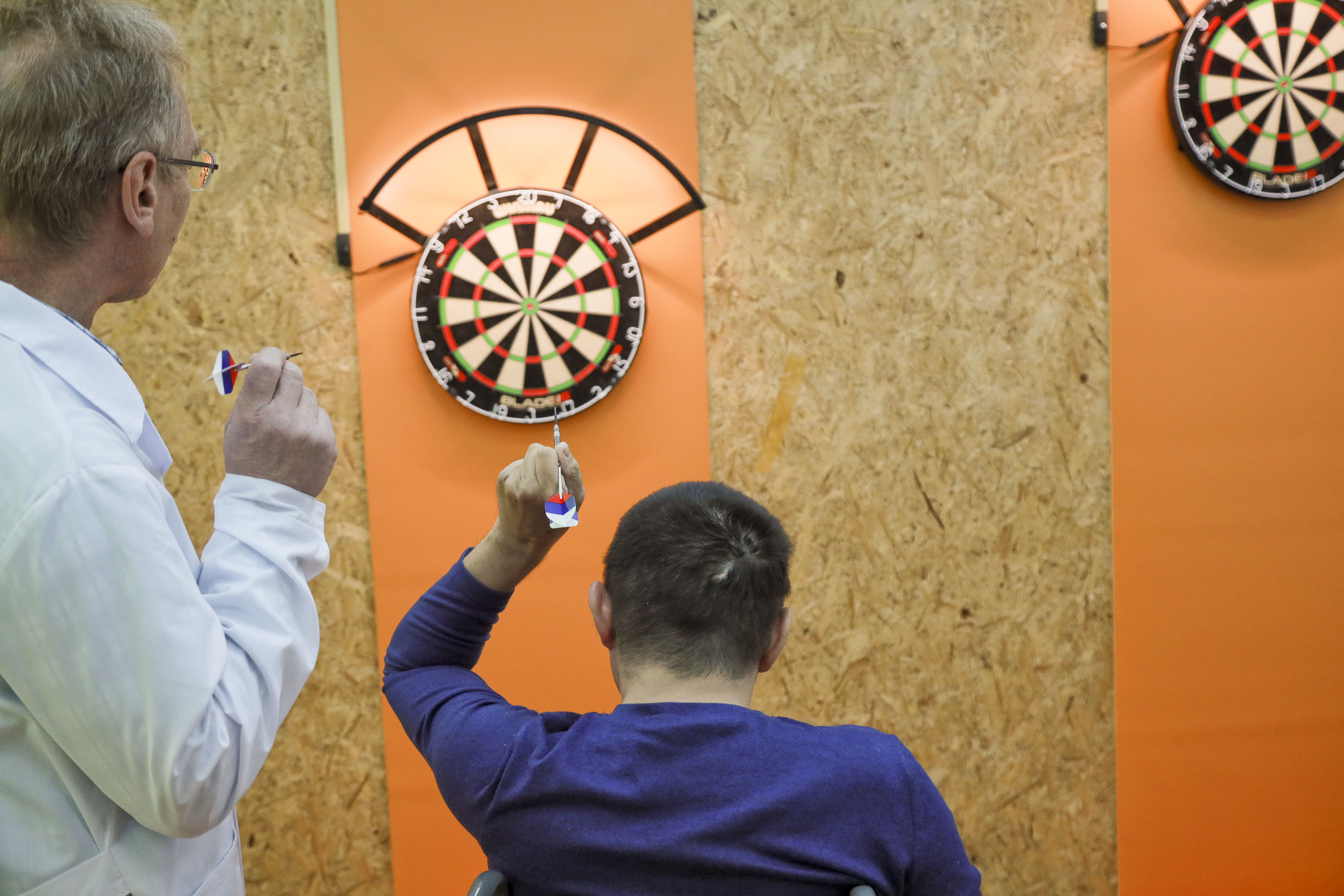 Зал для игры в дартс открыли в комплексном центре социального обслуживания населения Ленинского района. Метание дротиков будут использовать как ещё один элемент для реабилитации участников СВО. Такие движения очень полезны для восстановления после ранений.