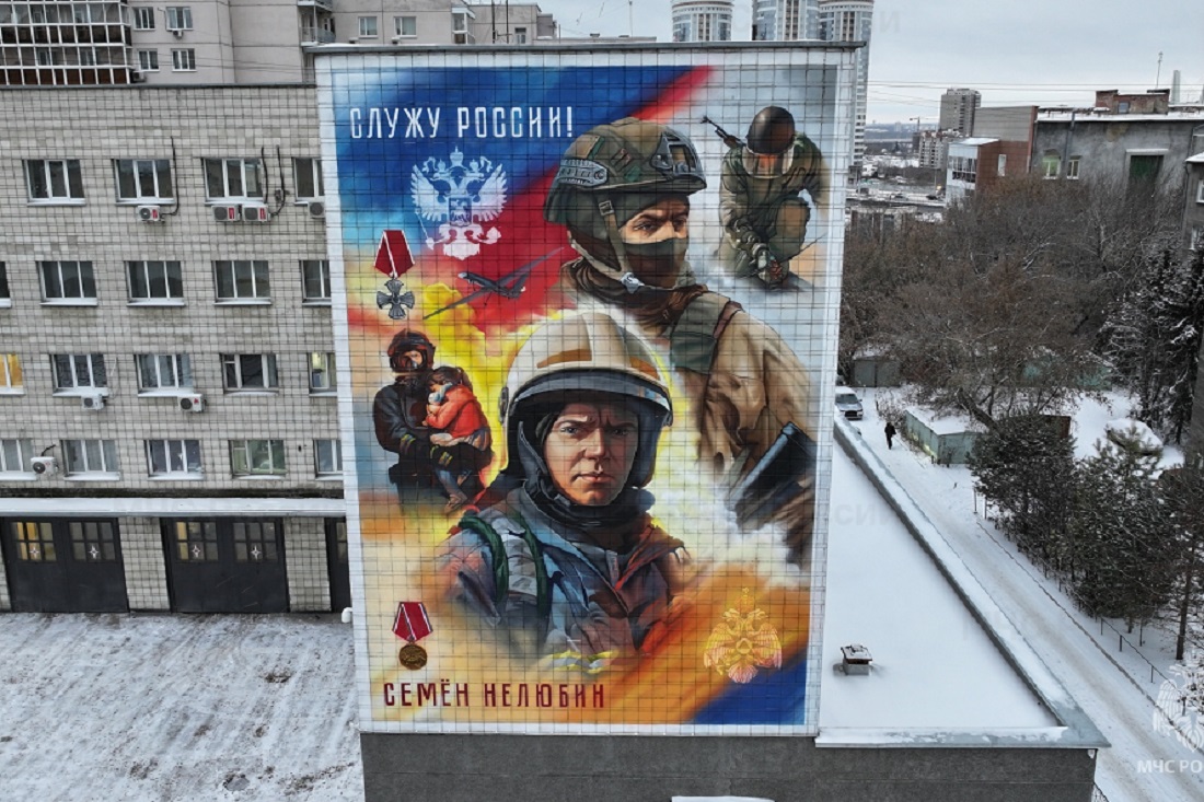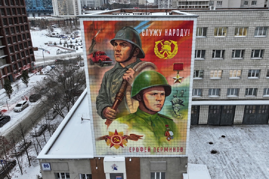 На фасаде здания пожарной части №1 по адресу Октябрьская, 86 нарисовали портрет Героя Советского Союза Ерофея Перминова. В годы войны он служил телефонистом, а после посвятил свою жизнь пожарной охране. На втором торце изобразили Семёна Нелюбина. Он 20 лет работал пожарным в Бердске, погиб на СВО, награждён орденом Мужества. На торжественном открытии портретов героев присутствовали их родственники.