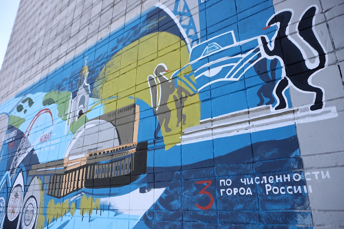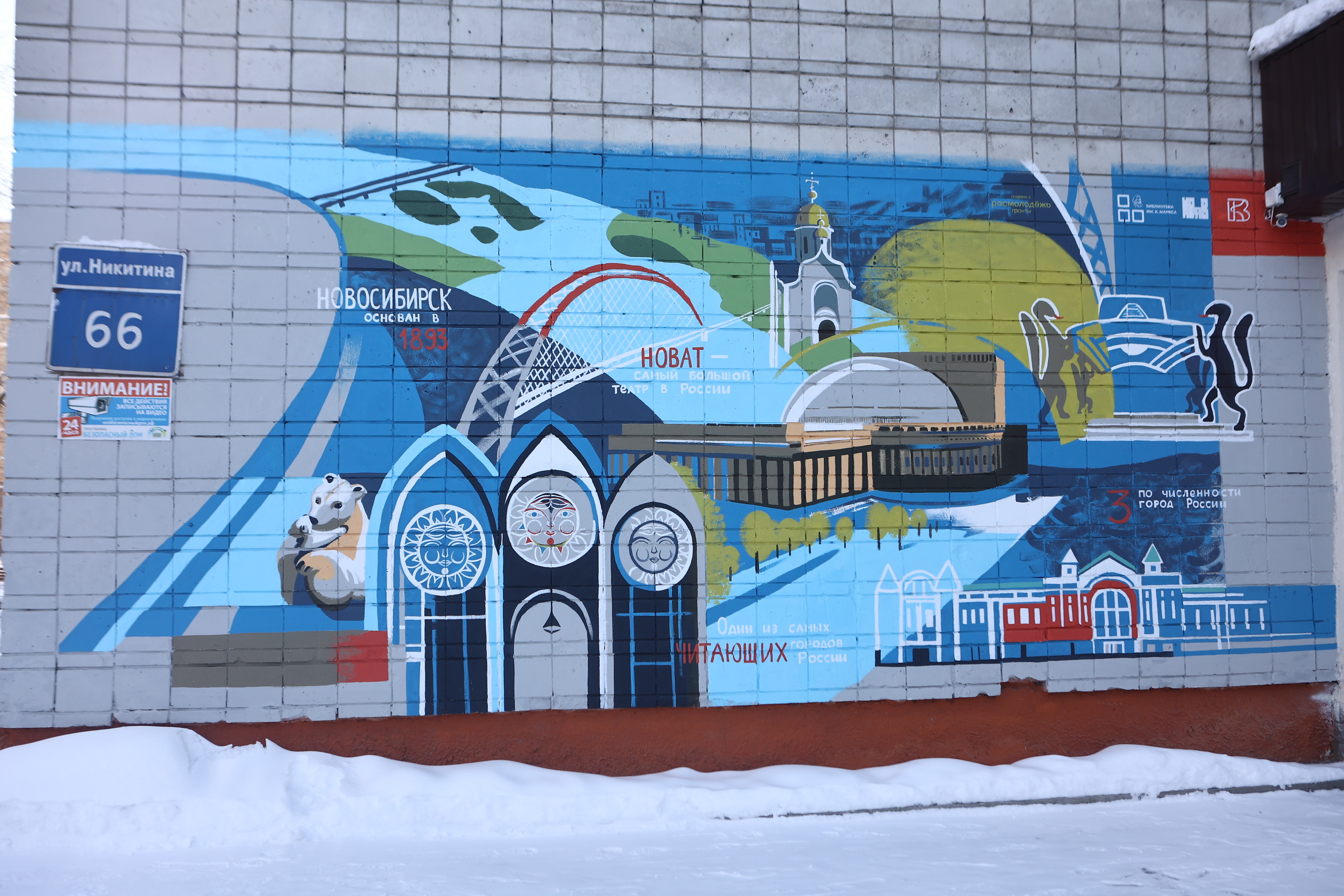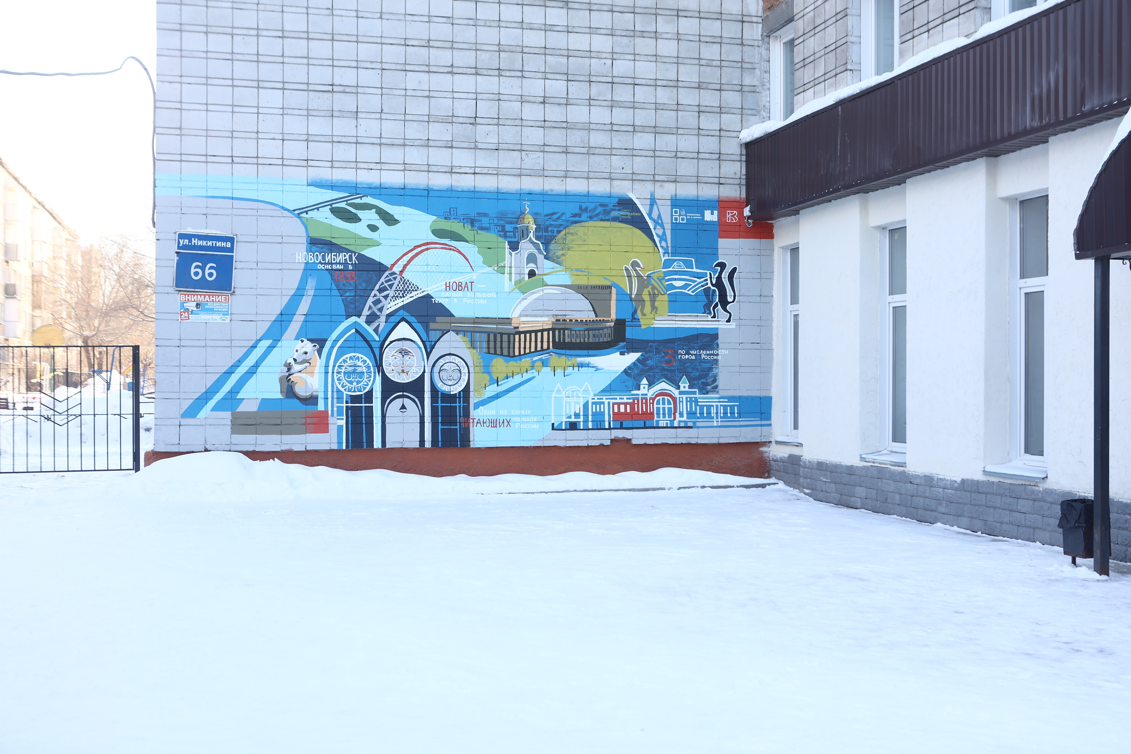 Краеведческий мурал появился на стене дома №66 на улице Никитина. Авторы изобразили Бугринский мост, оперный театр, Никольскую часовню, краеведческий музей, театр кукол, белого медвежонка. Над проектом работали не профессиональные художники, а волонтёры, которыми руководят опытные кураторы. Идею изображения придумали в городской библиотеке имени К. Маркса. Инициативу поддержало грантом федеральное агентство по делам молодёжи.