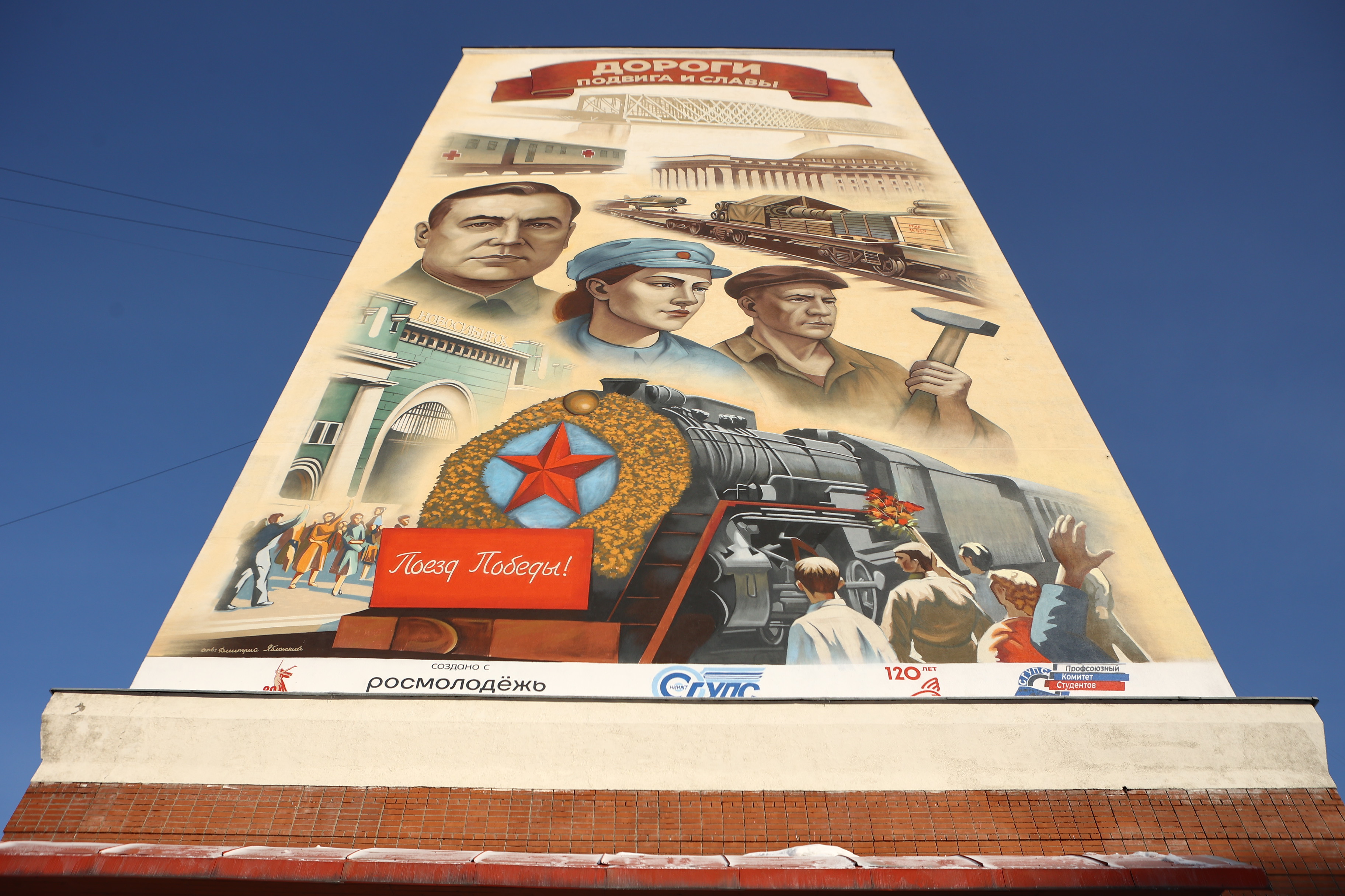 29 ноября 2025 года на стене самого высокого учебного корпуса студенческого городка Сибирского государственного университета путей сообщения (СГУПСа) открыли мурал «Так закалялась сталь — Р65», созданный силами студентов вуза. Полотно посвятили подвигу железнодорожников в годы Великой Отечественной войны. Название мурала отсылает к технической маркировке высокопрочных рельсов, составляющих основу железнодорожных путей страны. В центре композиции портрет Николая Лунина, машиниста паровозного депо Новосибирска. Высота мурала — 27,9 м, ширина — 13 м. Работа заняла три месяца
