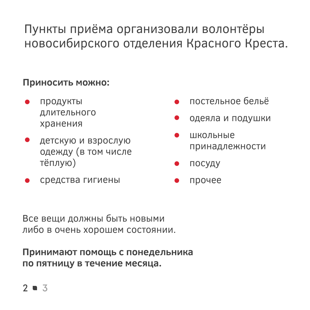 «Ситуация касается каждого. И, если есть возможность помочь не словом, а делом, нужно помогать. Я увидела в инстаграме, что есть пункты помощи, и решила помочь», — сообщает жительница Новосибирска Мария Величко.