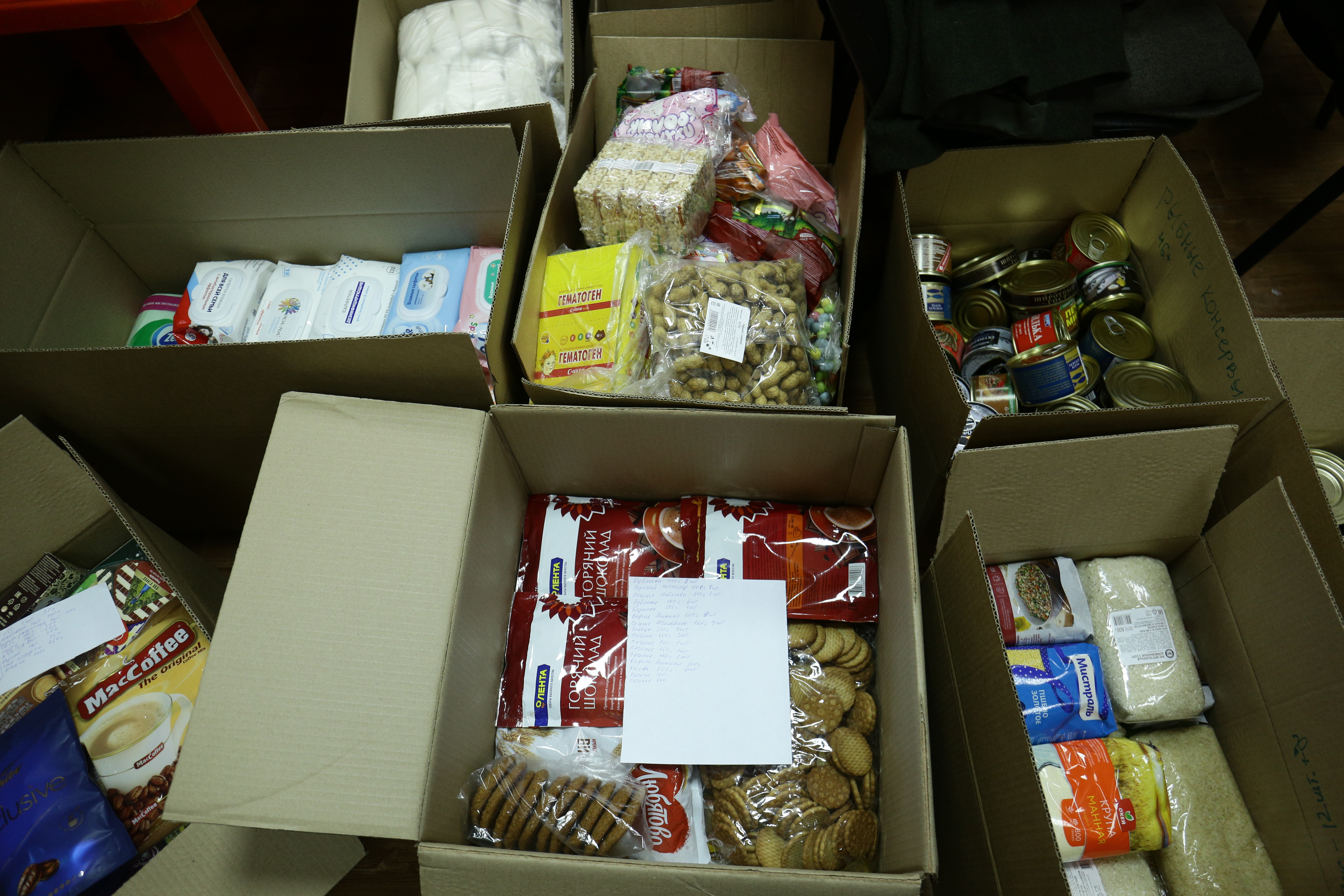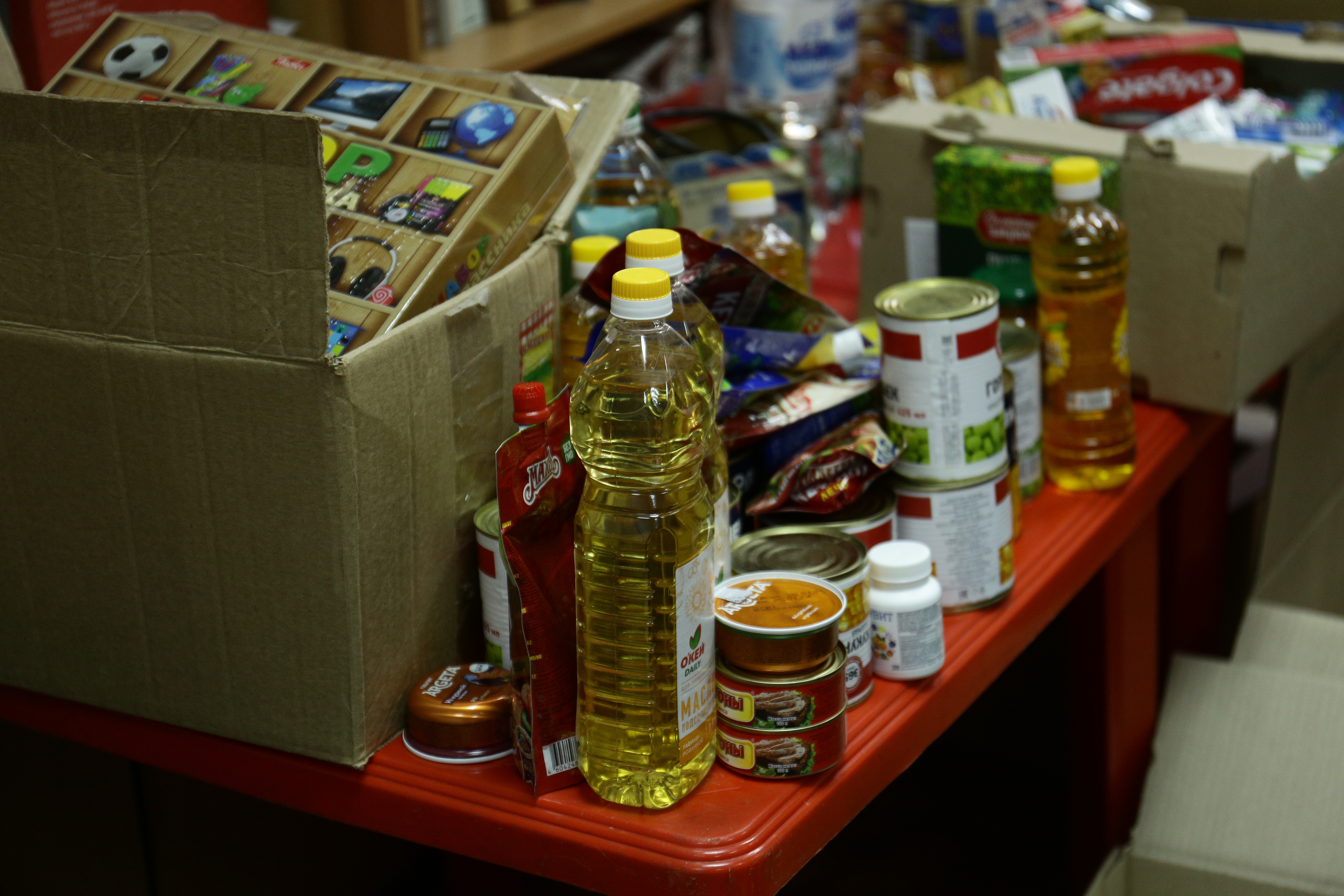 Пакеты с крупами и консервами несут не только горожане, привозят и организации.
