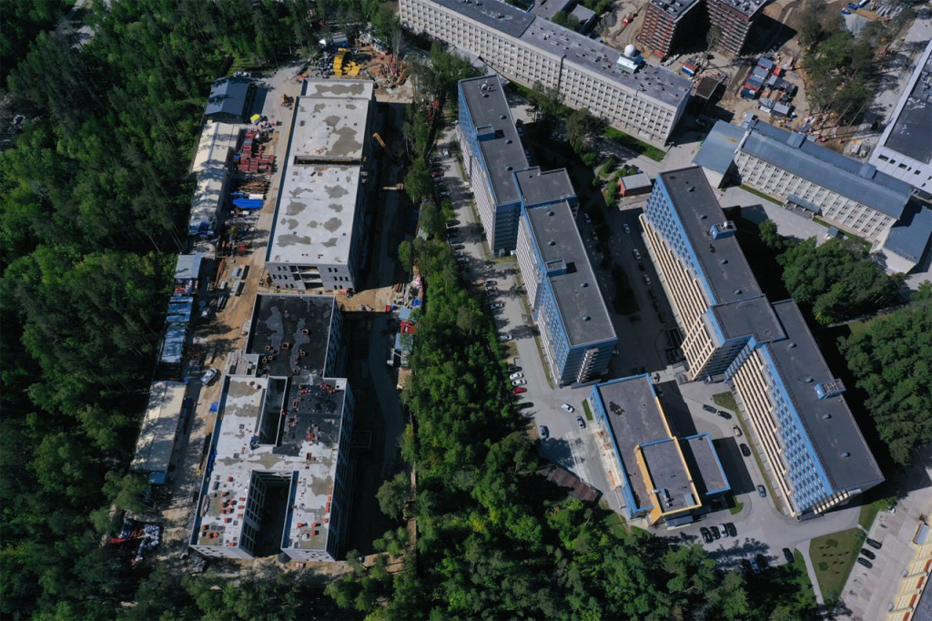 Продолжаются работы на других объектах второй очереди, которую планируют сдать до конца 2025 года. На этой неделе в здании научно-исследовательского центра НГУ заканчивают устройство железобетонного каркаса. Параллельно укладывают газобетонные блоки. Для учебно-научного центра Института медицины и психологии НГУ сделаны монолитные работы, ставят кровлю, стены и перегородки.